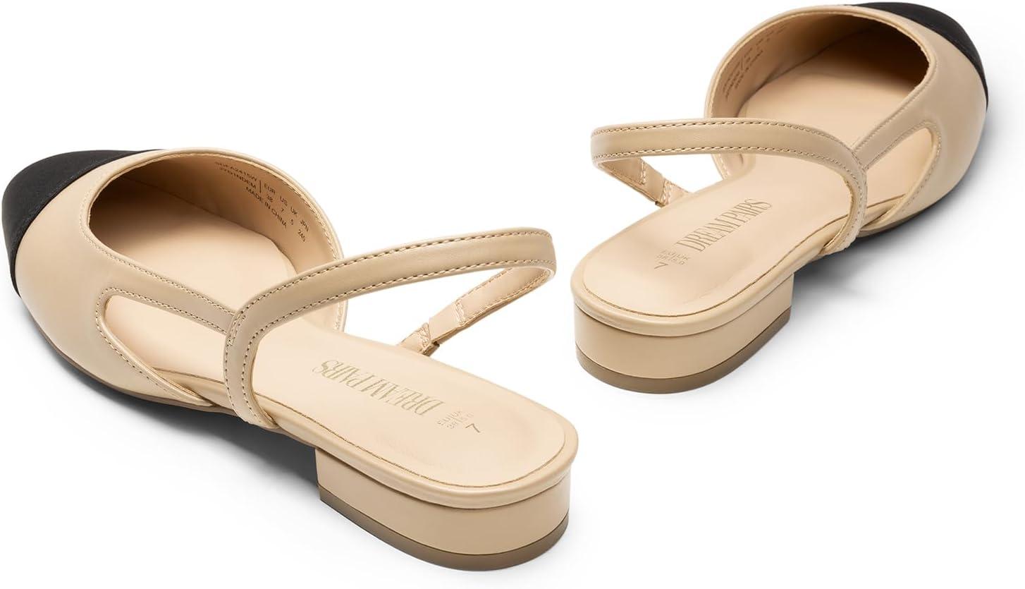 DREAM PAIRS Slingback Ballet Flats for Women Square Cap Toe Low Heel Dress Shoes Comfortable Work Flats for Office Party Wedding Business Casual(Nude)