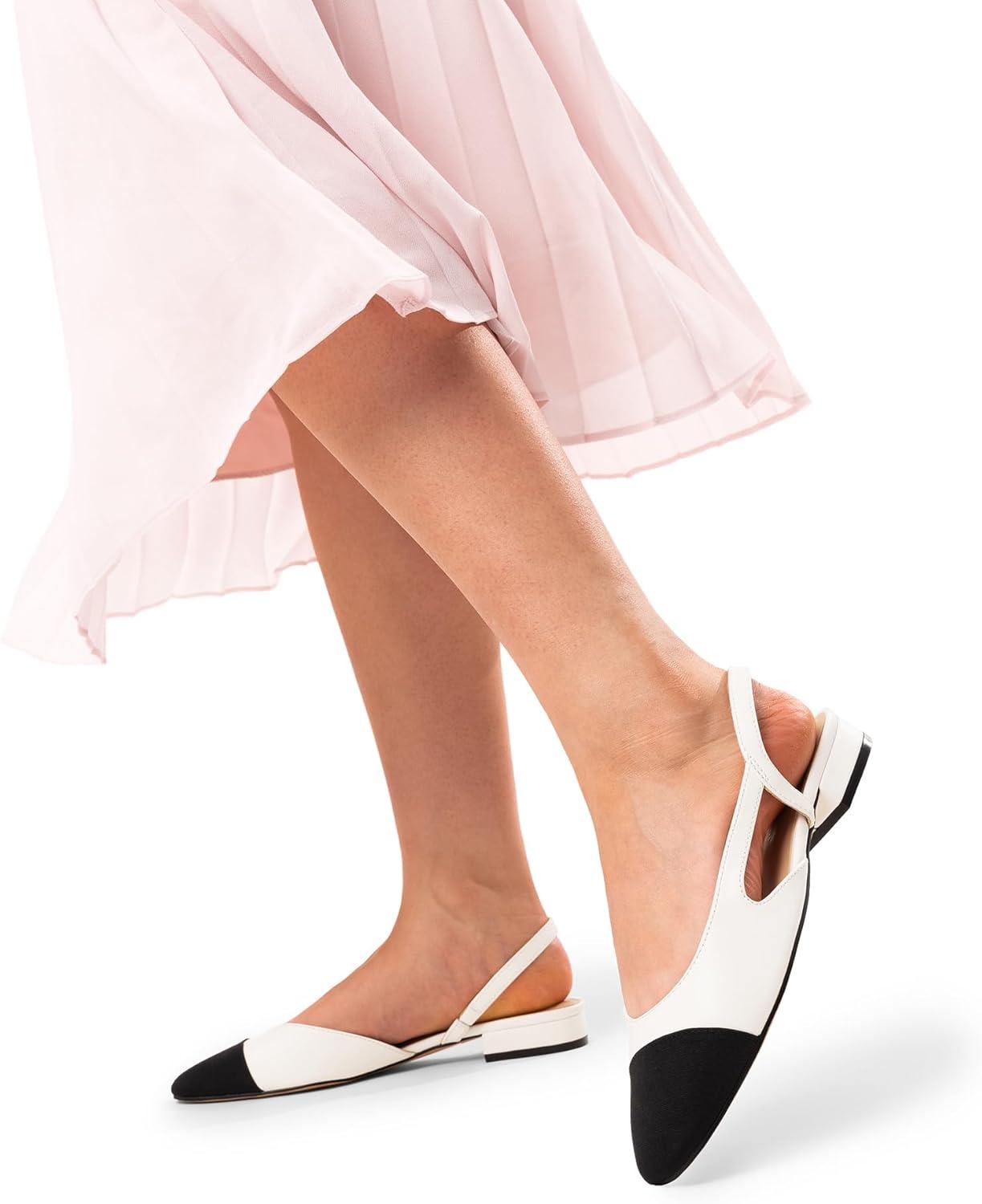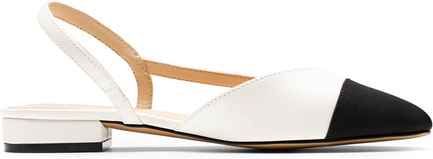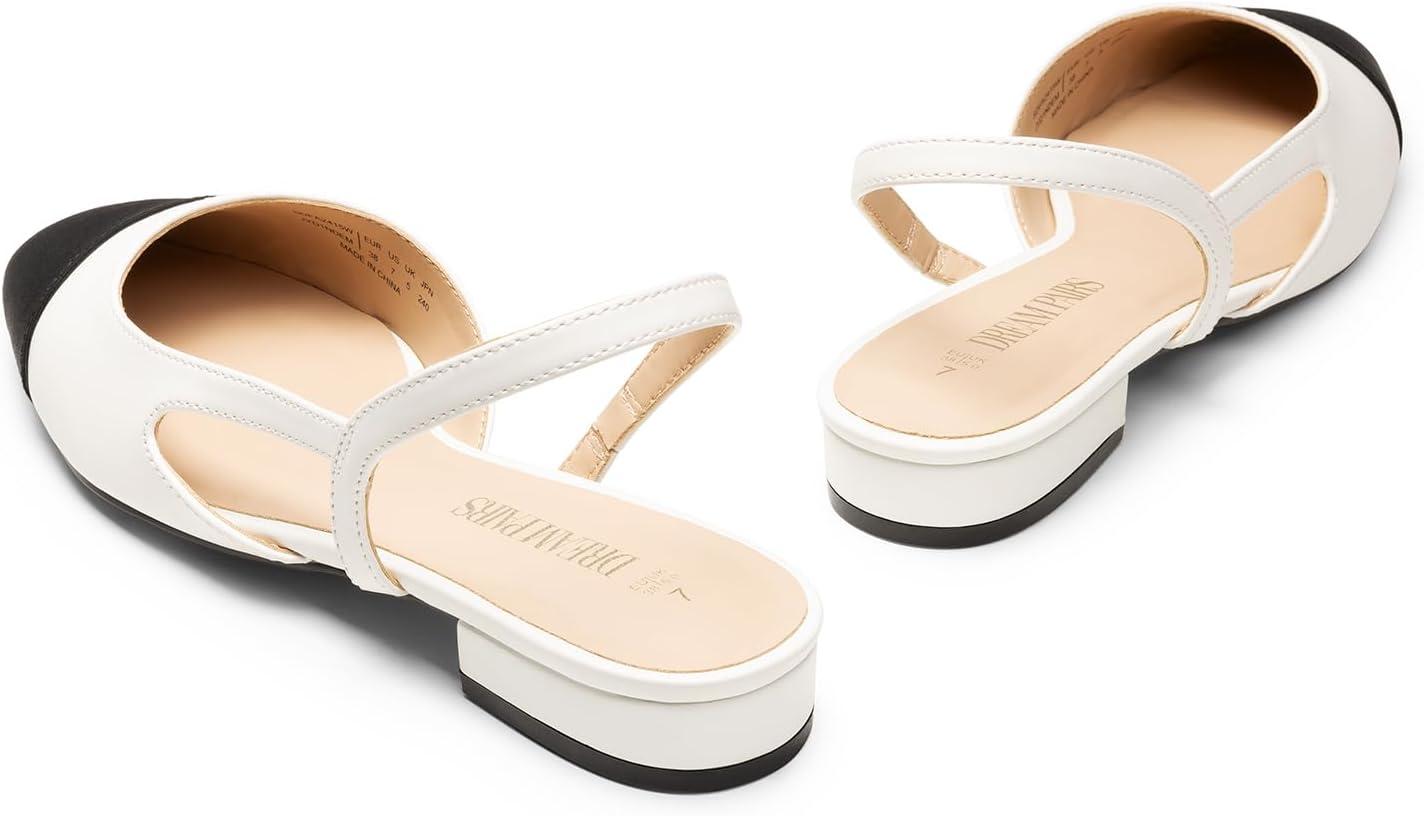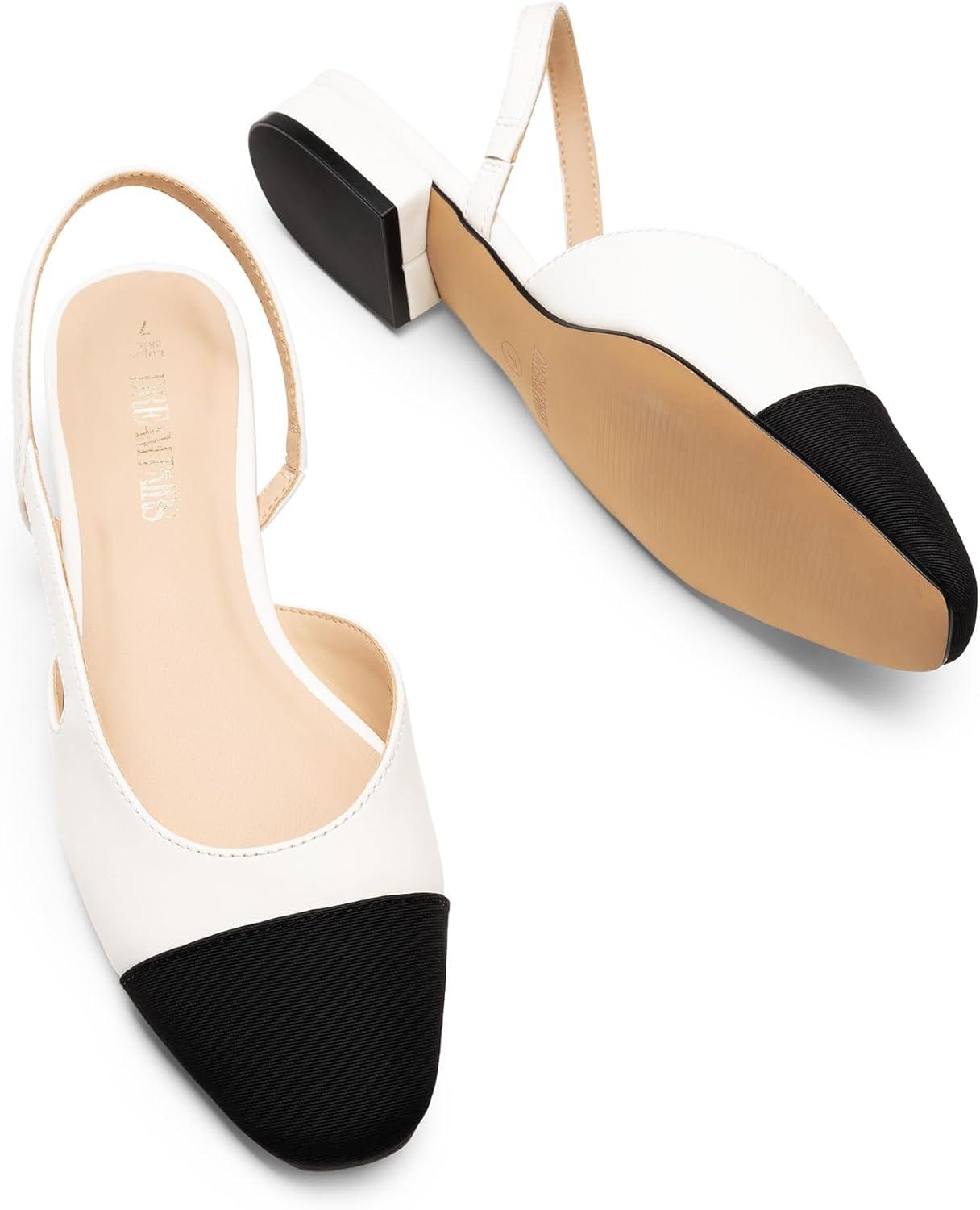 DREAM PAIRS Slingback Ballet Flats for Women Square Cap Toe Low Heel Dress Shoes Comfortable Work Flats for Office Party Wedding Business Casual(White)