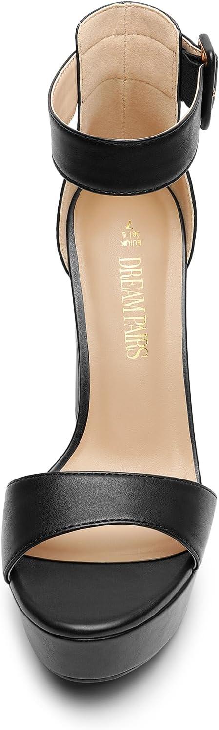 DREAM PAIRS Women’s Platform Heel Sandals, Open Toe Ankle Strap Heel Fashion Wedding Party Dress Sandals Shoes(Black-pu)