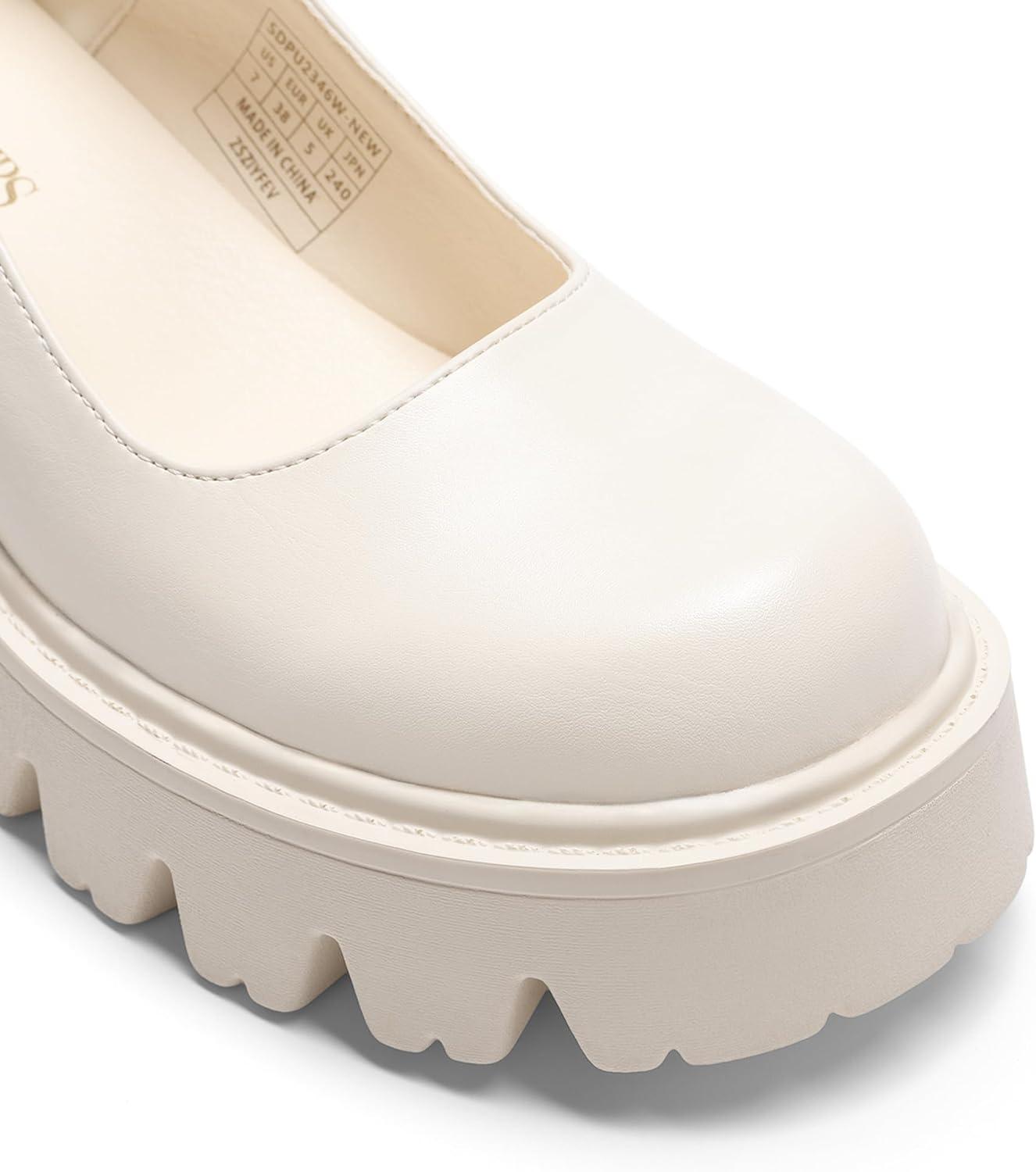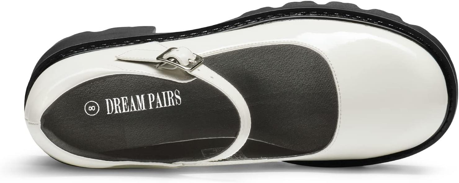 DREAM PAIRS Women’s Mary Janes Shoes Platform Dress Low Heel Chunky Pumps Round Toe Ankle Strap Pumps Shoes Oxfords Esther(White)