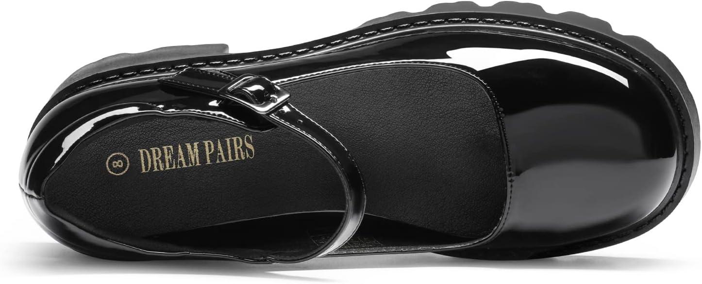 DREAM PAIRS Women’s Mary Janes Shoes Platform Dress Low Heel Chunky Pumps Round Toe Ankle Strap Pumps Shoes Oxfords Esther(Black-pu)