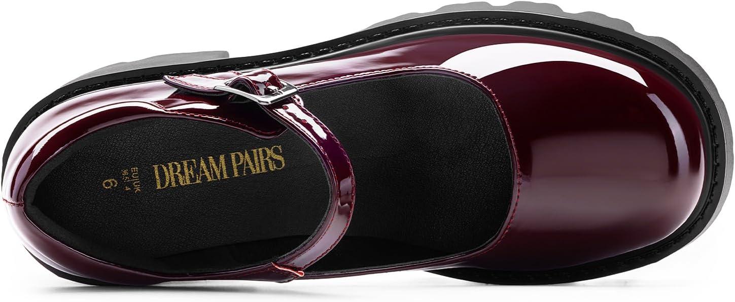 DREAM PAIRS Women’s Mary Janes Shoes Platform Dress Low Heel Chunky Pumps Round Toe Ankle Strap Pumps Shoes Oxfords Esther(Burgundy-pat)