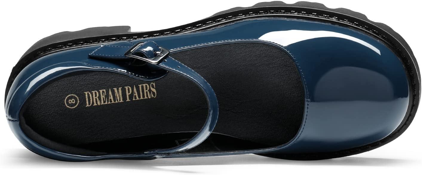 DREAM PAIRS Women’s Mary Janes Shoes Platform Dress Low Heel Chunky Pumps Round Toe Ankle Strap Pumps Shoes Oxfords Esther(Navy)