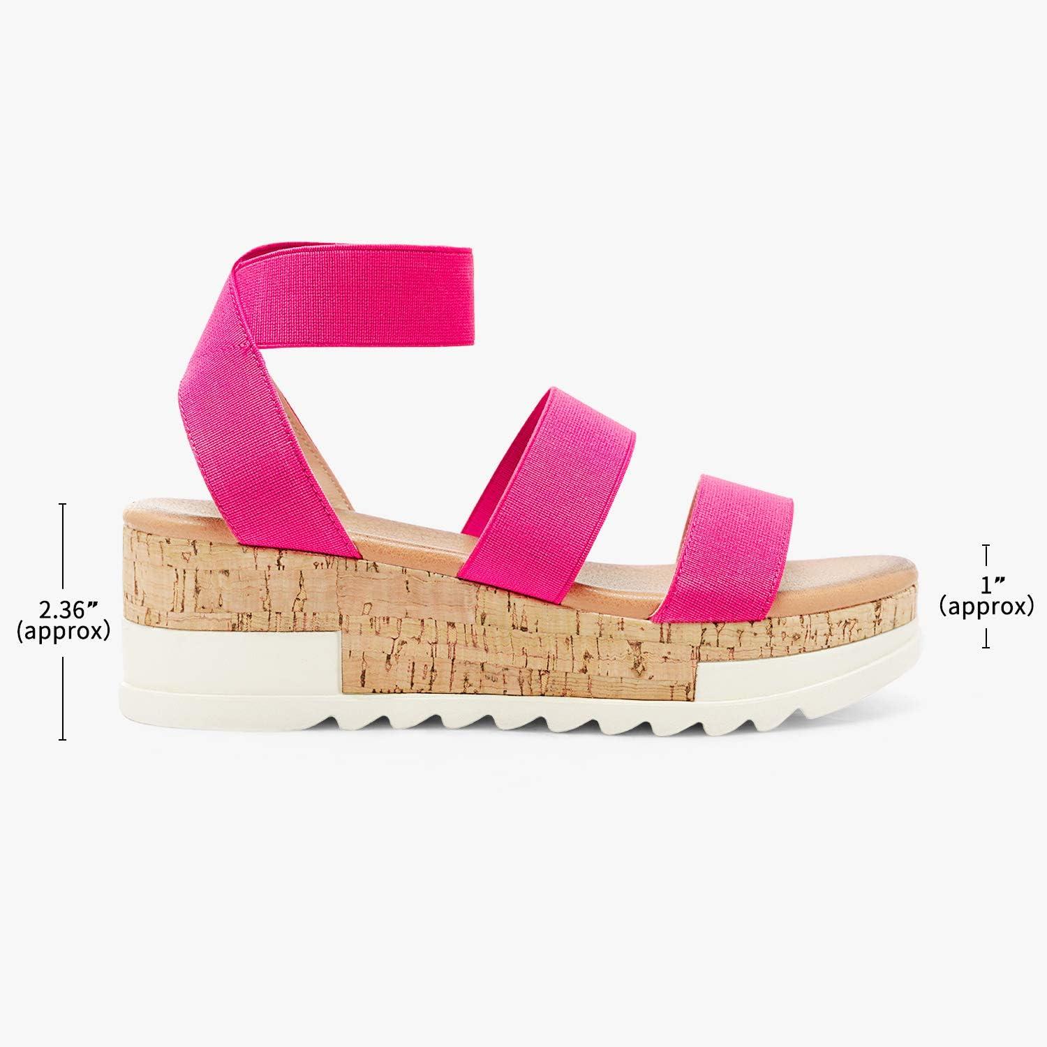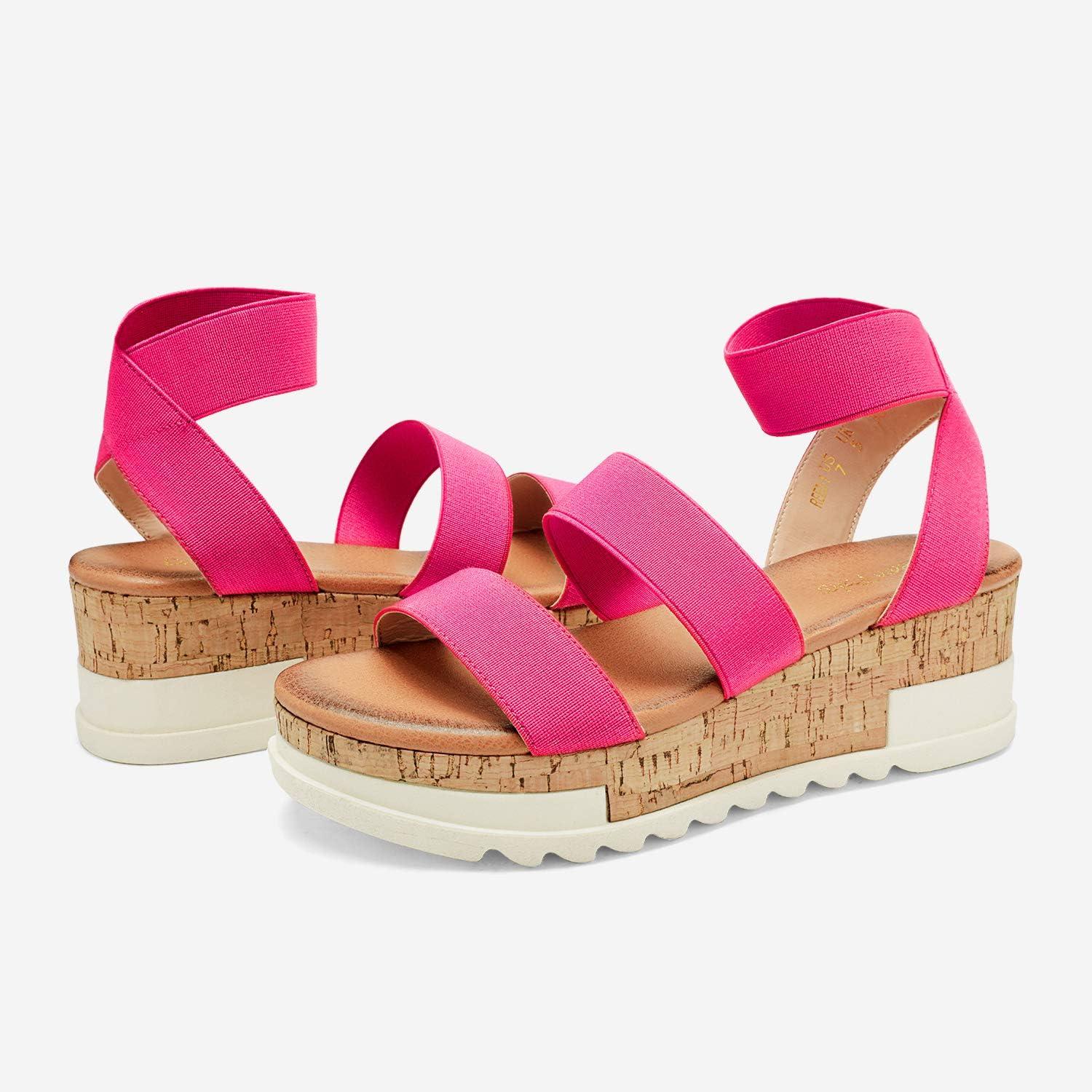 DREAM PAIRS Women’s Open Toe Elastic Ankle Strap Casual Flatform Platform Wedges Sandals(Neon/Pink)