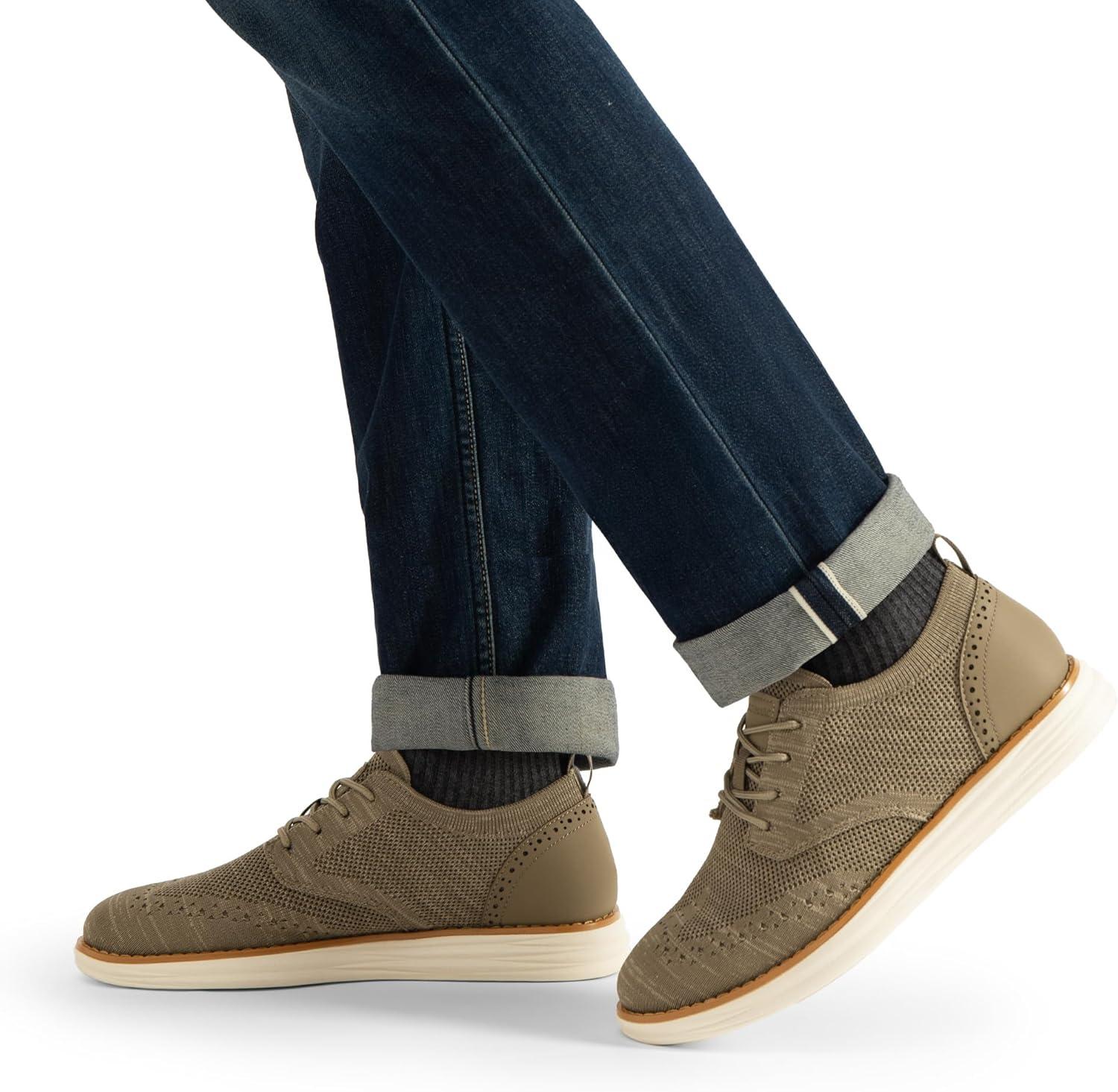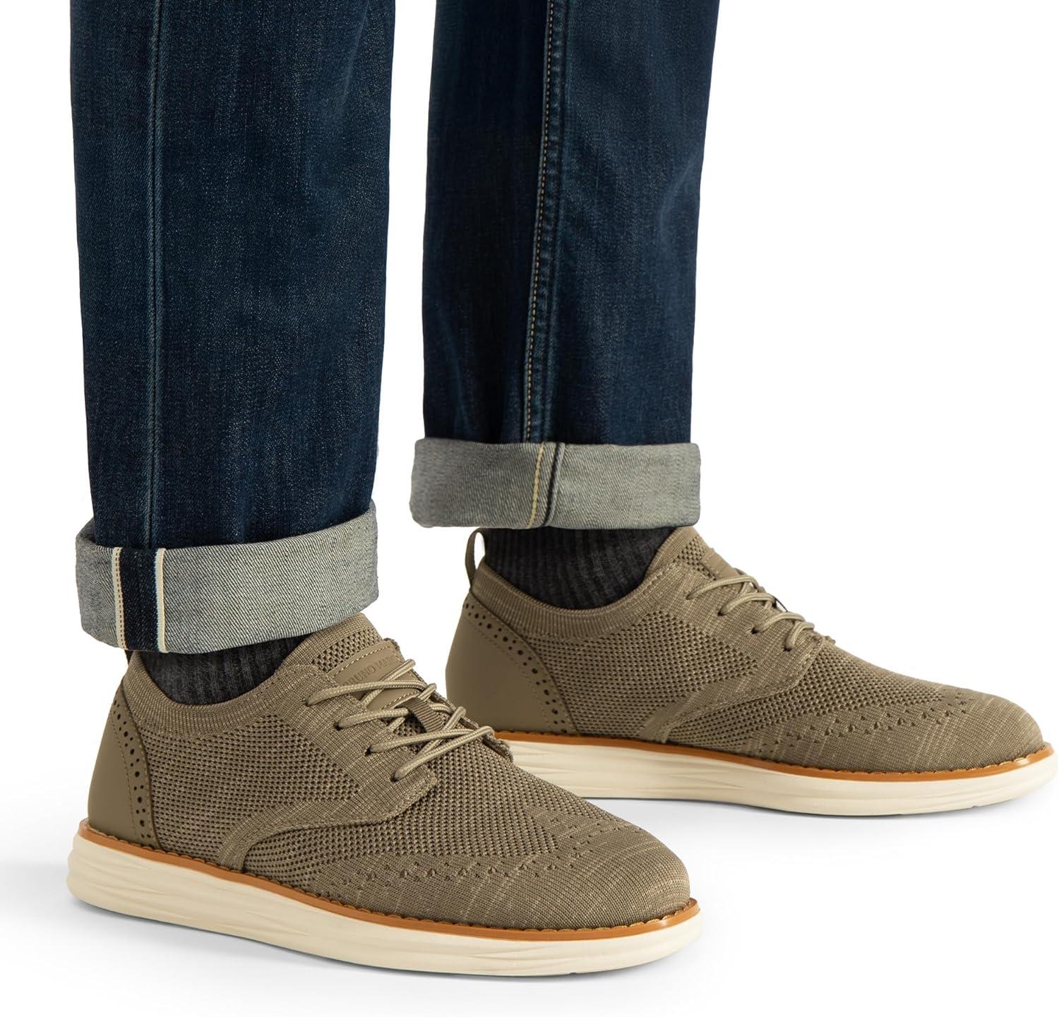 Bruno Marc Men’s KnitFlex Craft Mesh Oxfords Sneakers Casual Dress Lace-Up Lightweight Walking Shoes(6-khaki)
