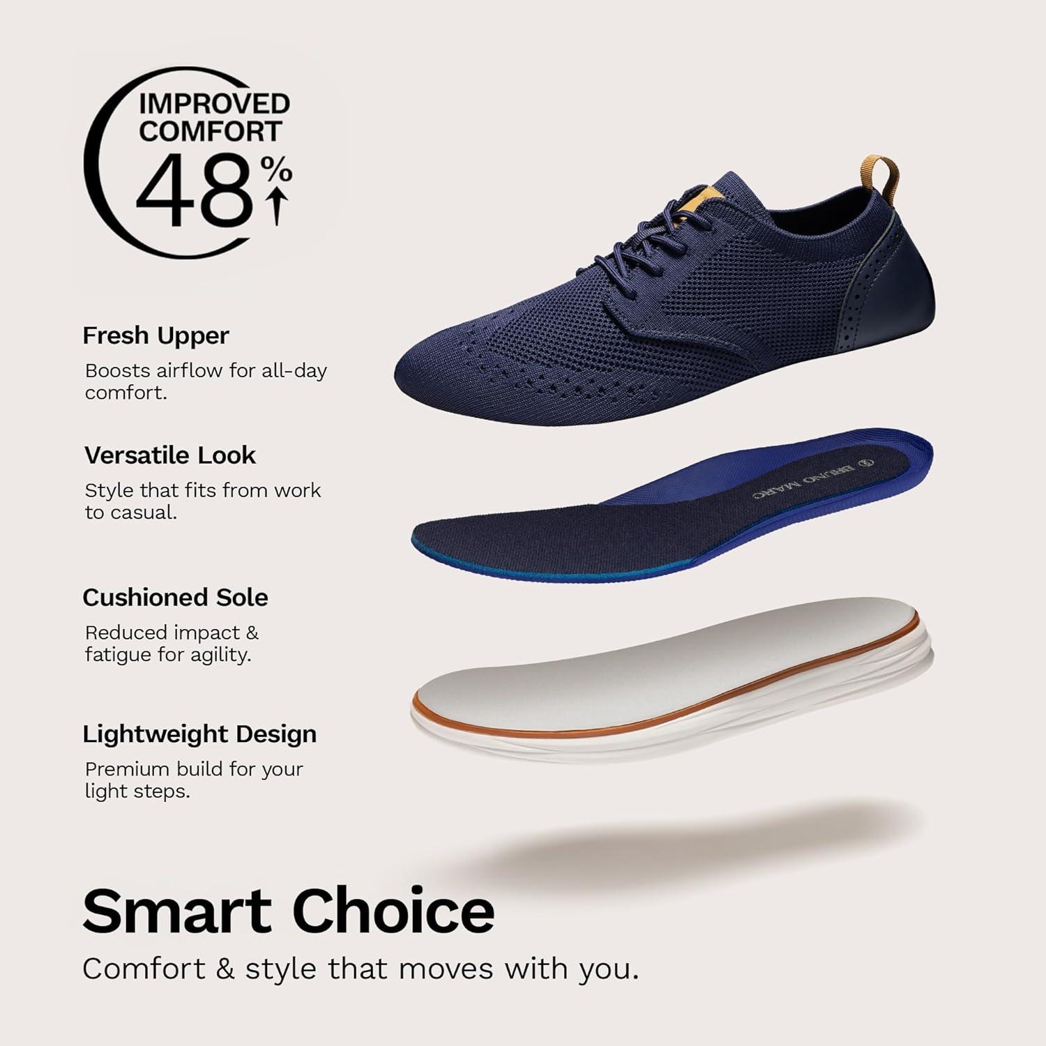 Bruno Marc Men’s KnitFlex Craft Mesh Oxfords Sneakers Casual Dress Lace-Up Lightweight Walking Shoes(6-navy)