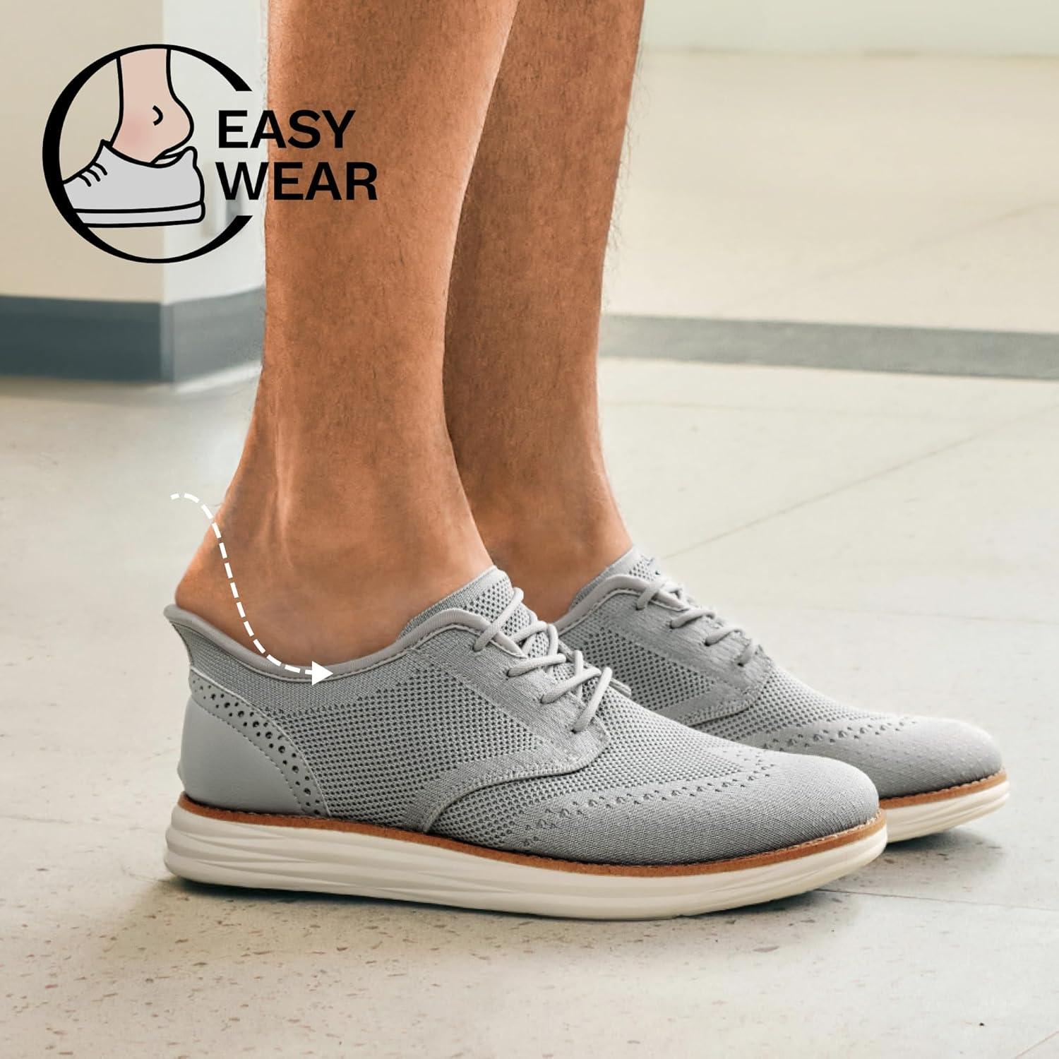 Bruno Marc Men’s KnitFlex Craft Mesh Oxfords Sneakers Casual Dress Lace-Up Lightweight Walking Shoes(Grey-hands Free)