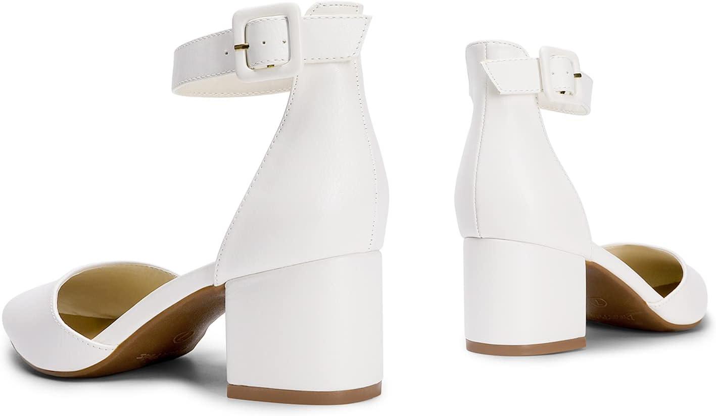 DREAM PAIRS ANNEE Pointed Toe Low Chunky Heels Pump Shoes(White/Pu)