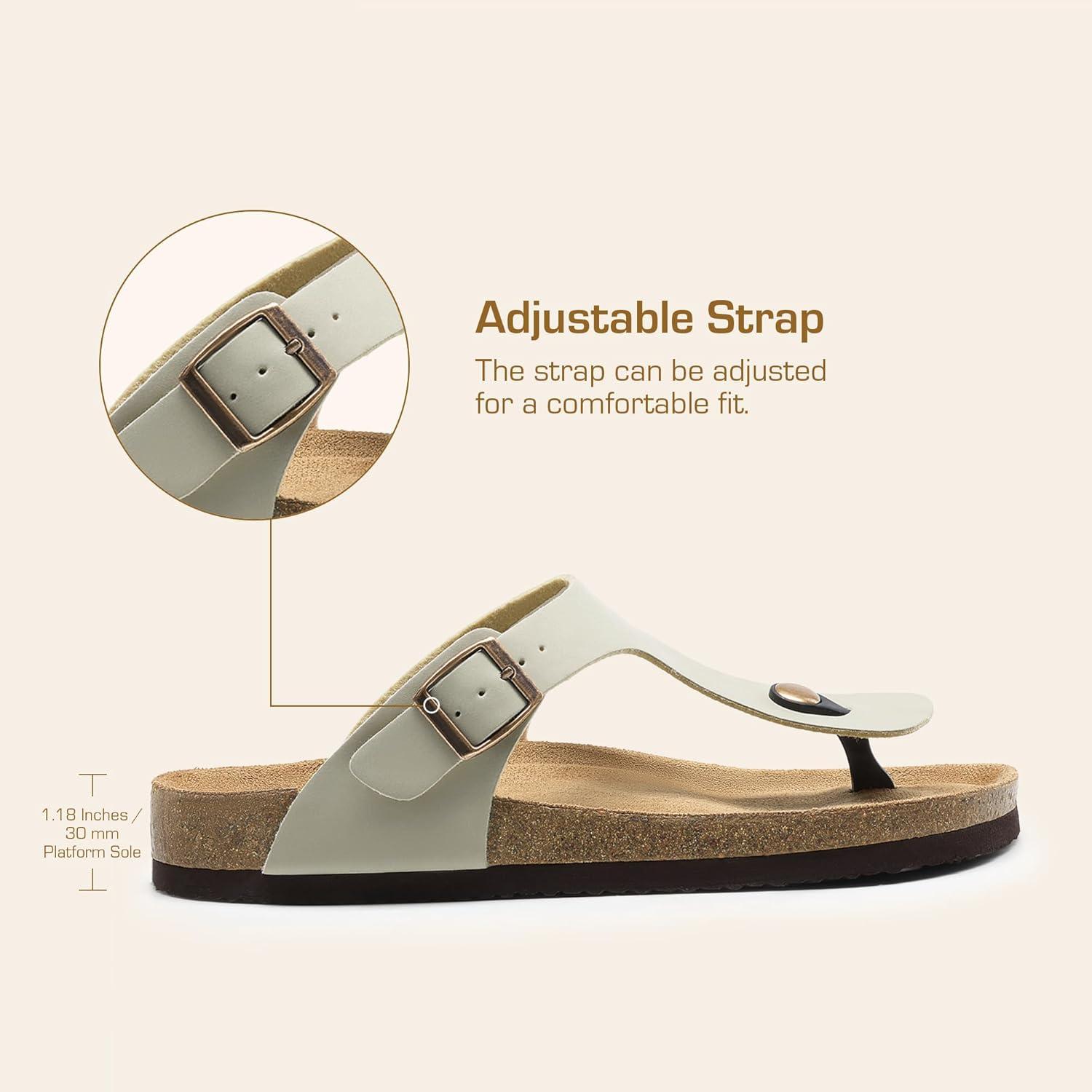 DREAM PAIRS Arch Support Thong Sandals for Women Casual Leather Flip Flops Dressy Slides with Soft Cork Footbed Adjustable Strap for Summer Beach Vacation(Beige)