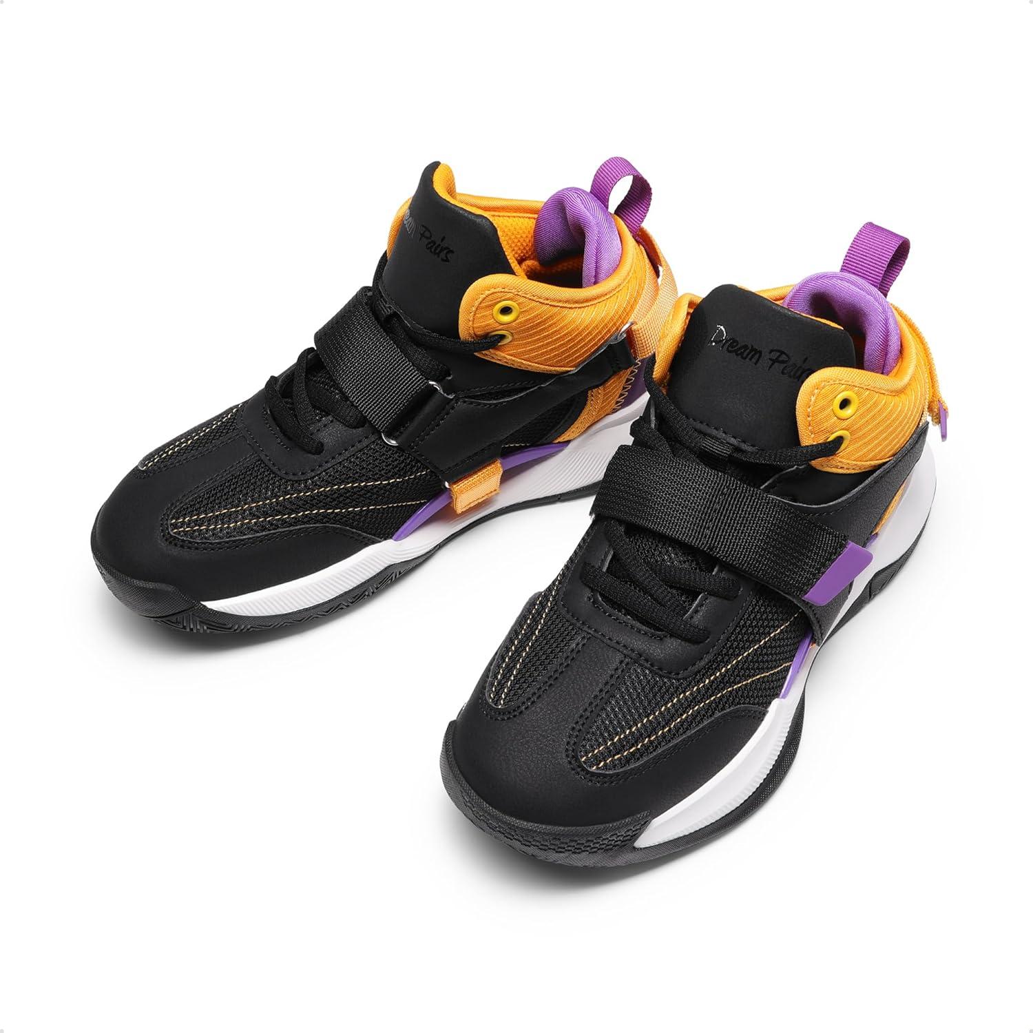 DREAM PAIRS Boys Girls Basketball Shoes Little Kid Big Kid Non-Slip Sport Athletic Sneakers Boys Comfortable Durable School Training Shoes(Black/Gold/Purple)