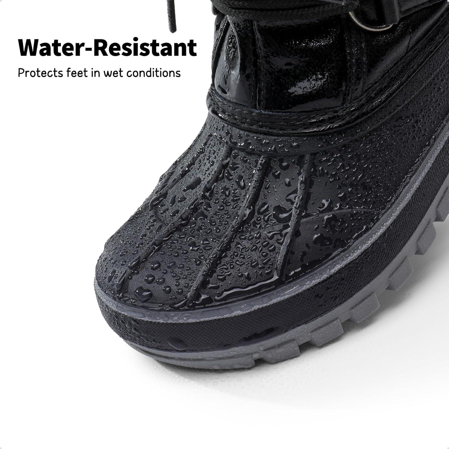 DREAM PAIRS Boys & Girls Faux Fur-Lined Winter Snow Boots for Little/Big Kids(Black)