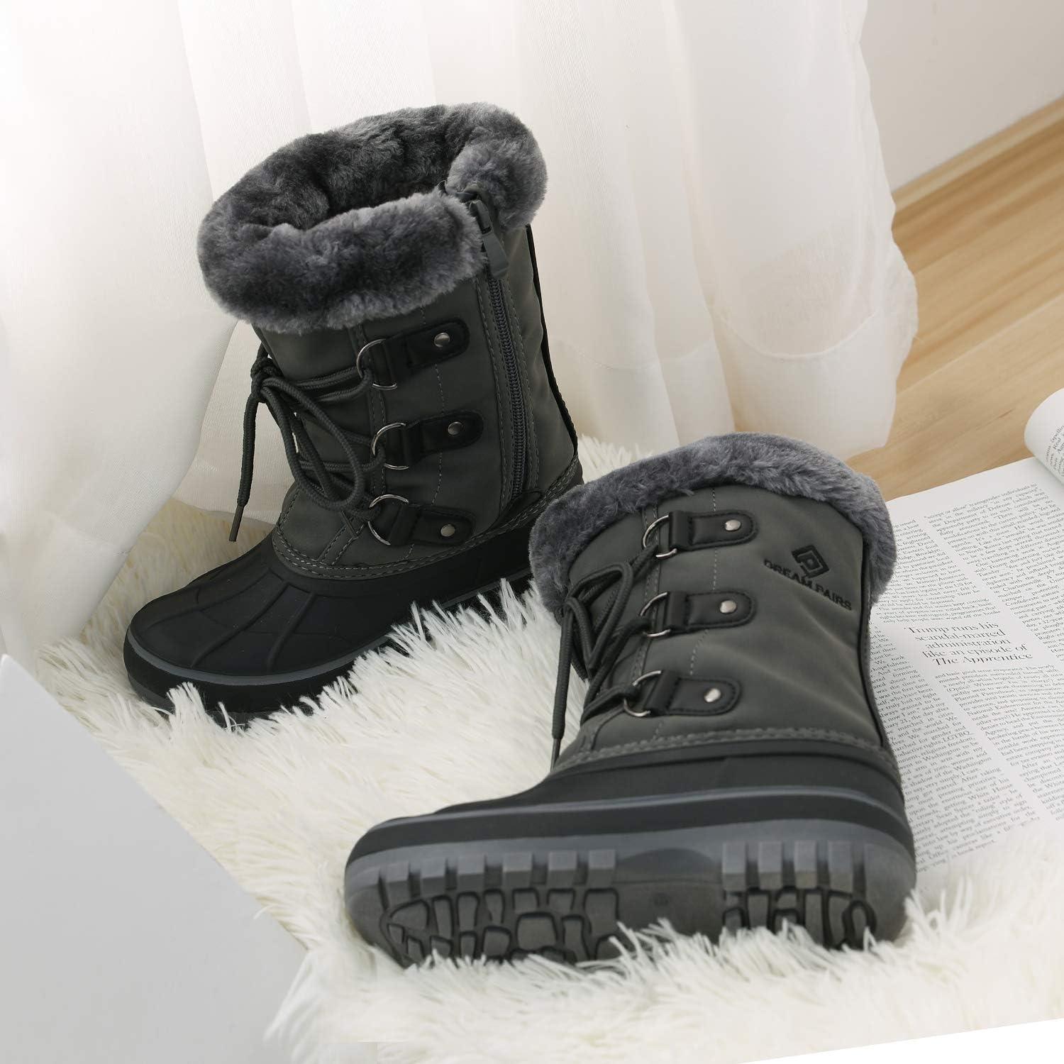 DREAM PAIRS Boys & Girls Faux Fur-Lined Winter Snow Boots for Little/Big Kids(Grey)