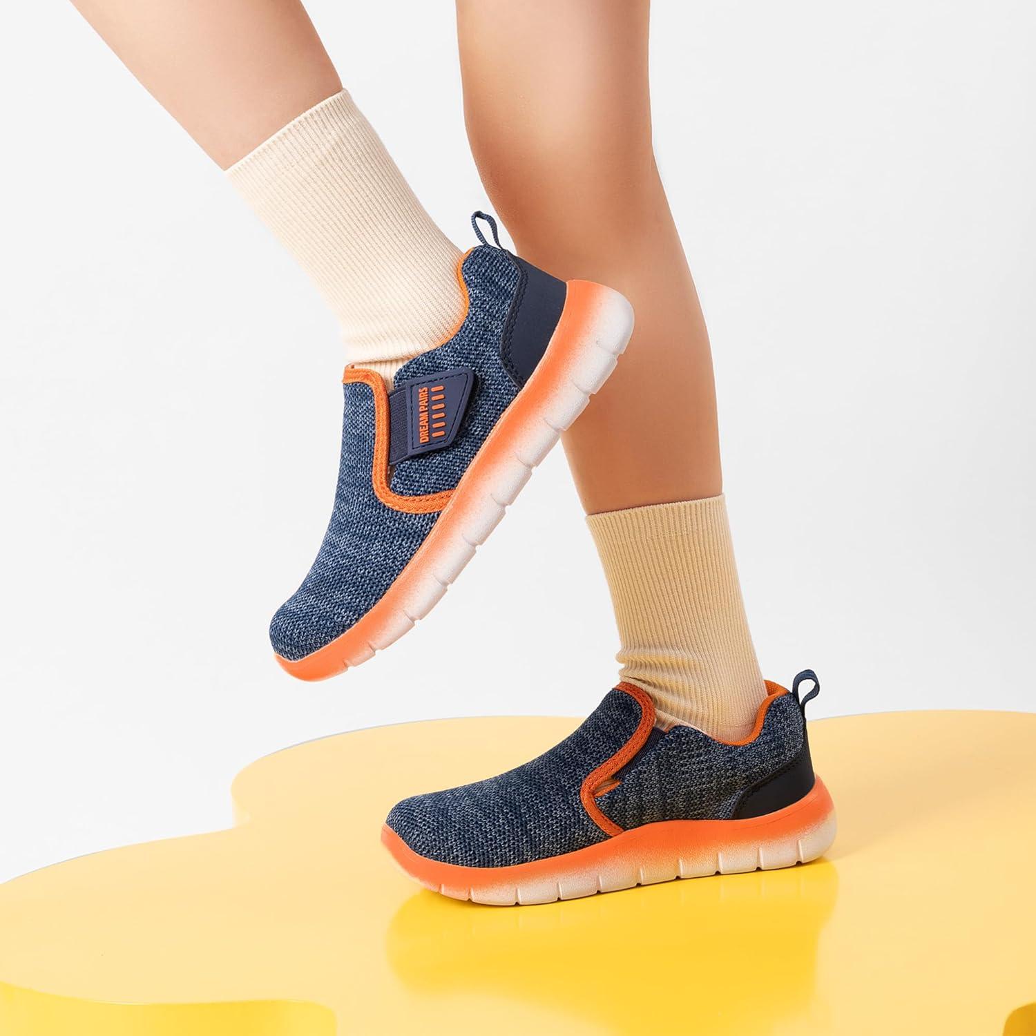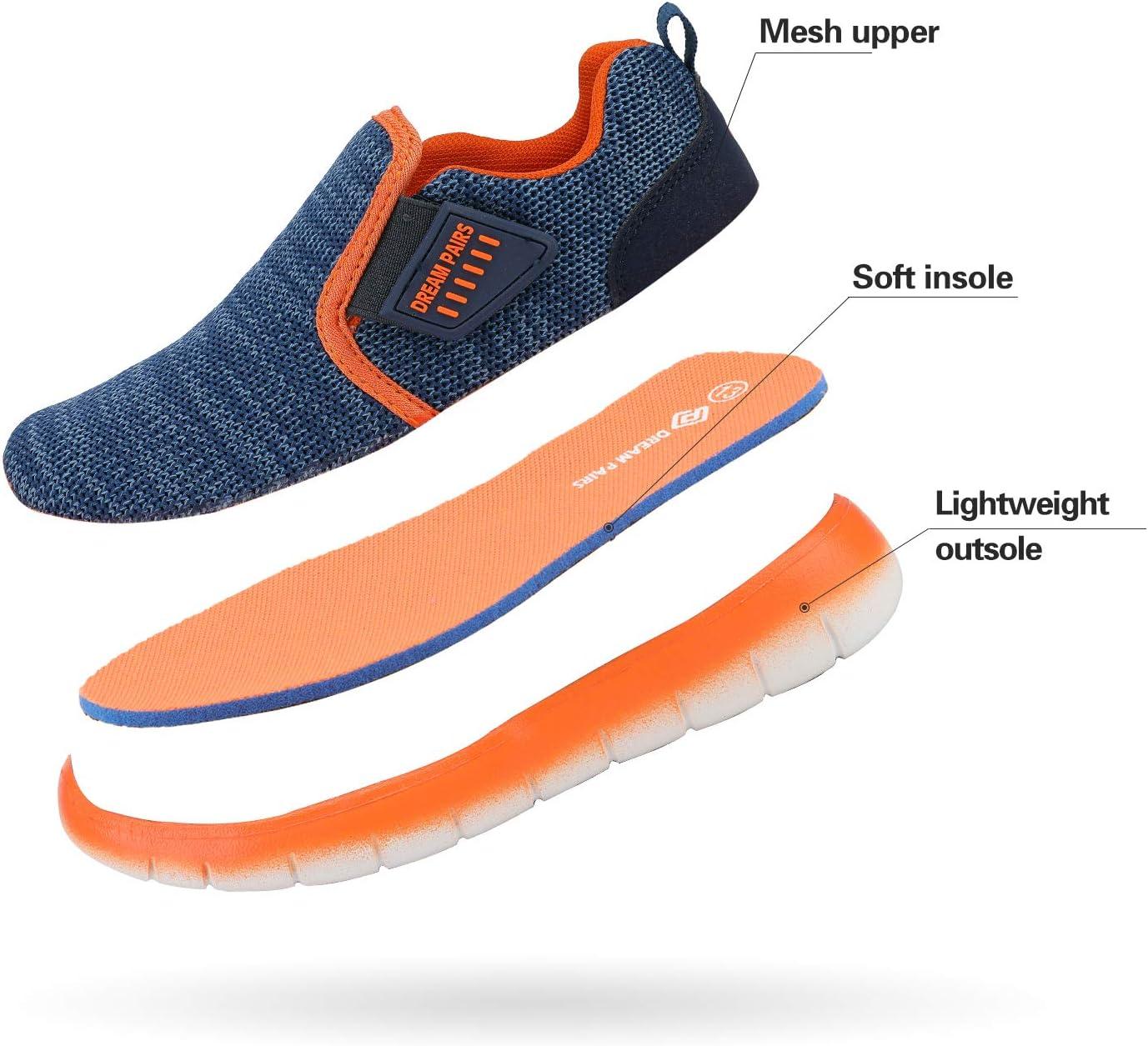 DREAM PAIRS Boys Girls Shoes Kids Slip on Tennis EZ-Ons MightyMovers Running Athletic Barefoot Zero Drop Sports Sneakers(Navy/Orange)