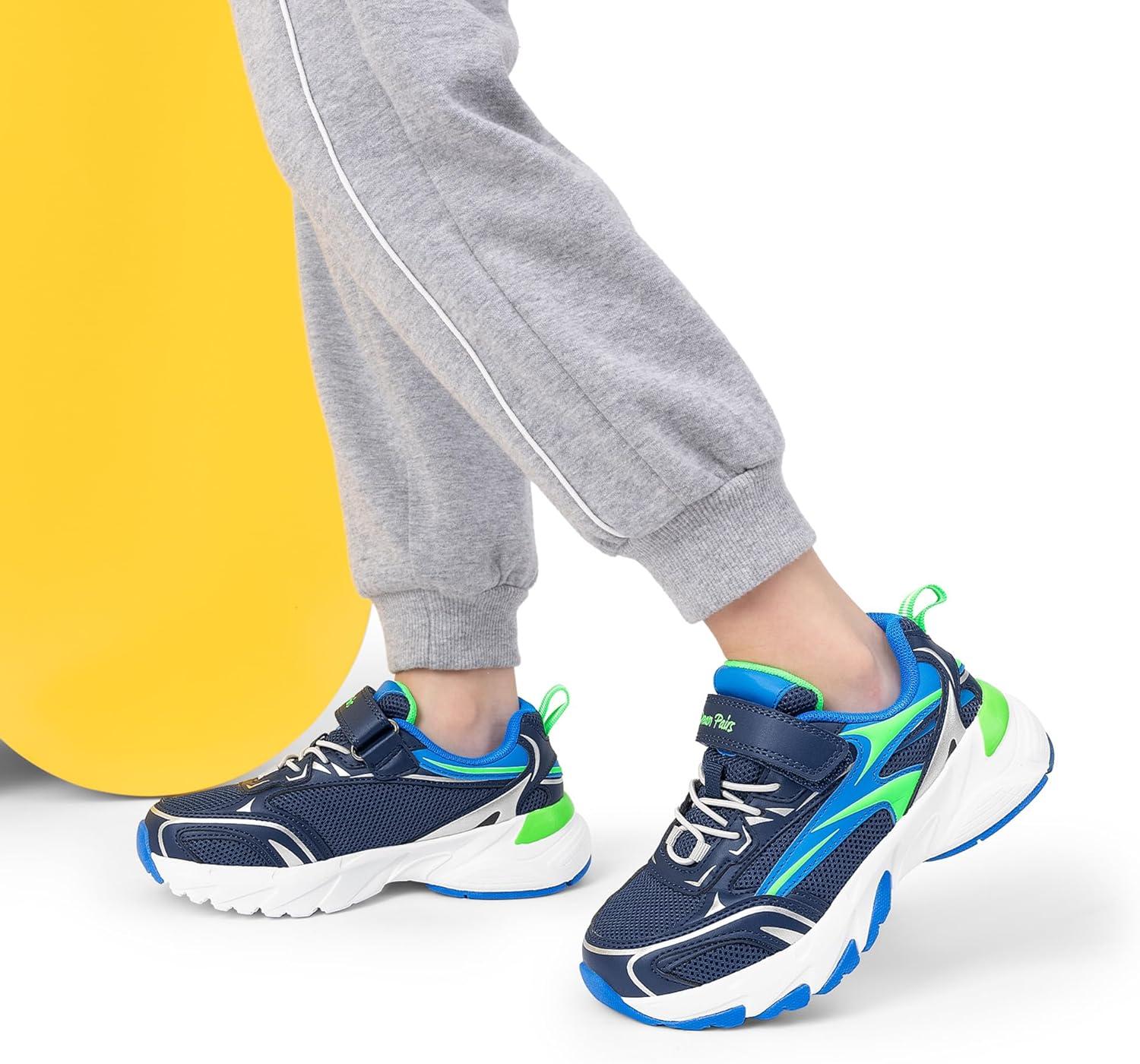 DREAM PAIRS Boys Girls Shoes Kids Tennis Athletic Running Footwear Breathable Walking Sneakers for Little/Big Kid(Navy/Neon Green)