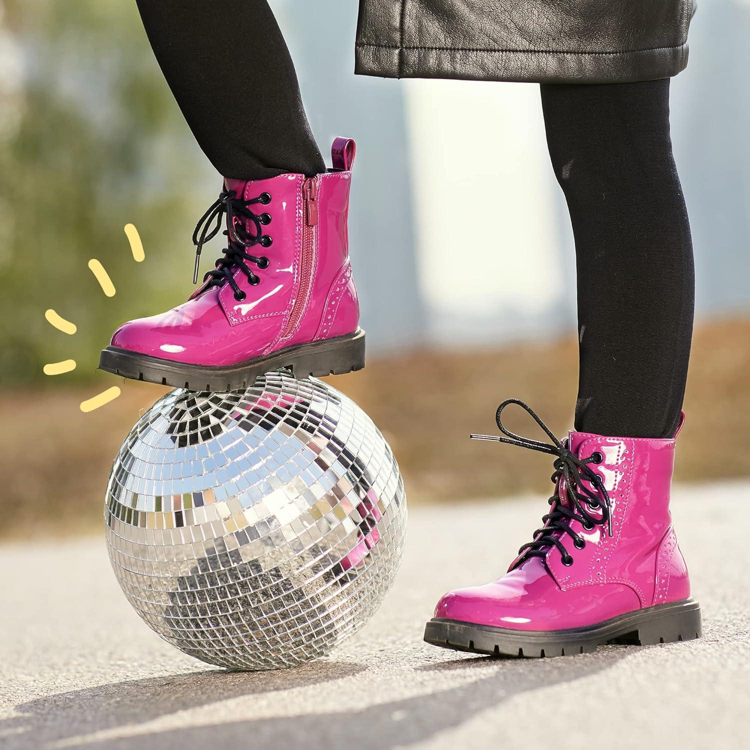 DREAM PAIRS Boys Girls Side Zipper Combat Ankle Boots(Toddler/Little Kid(Rose/Red)
