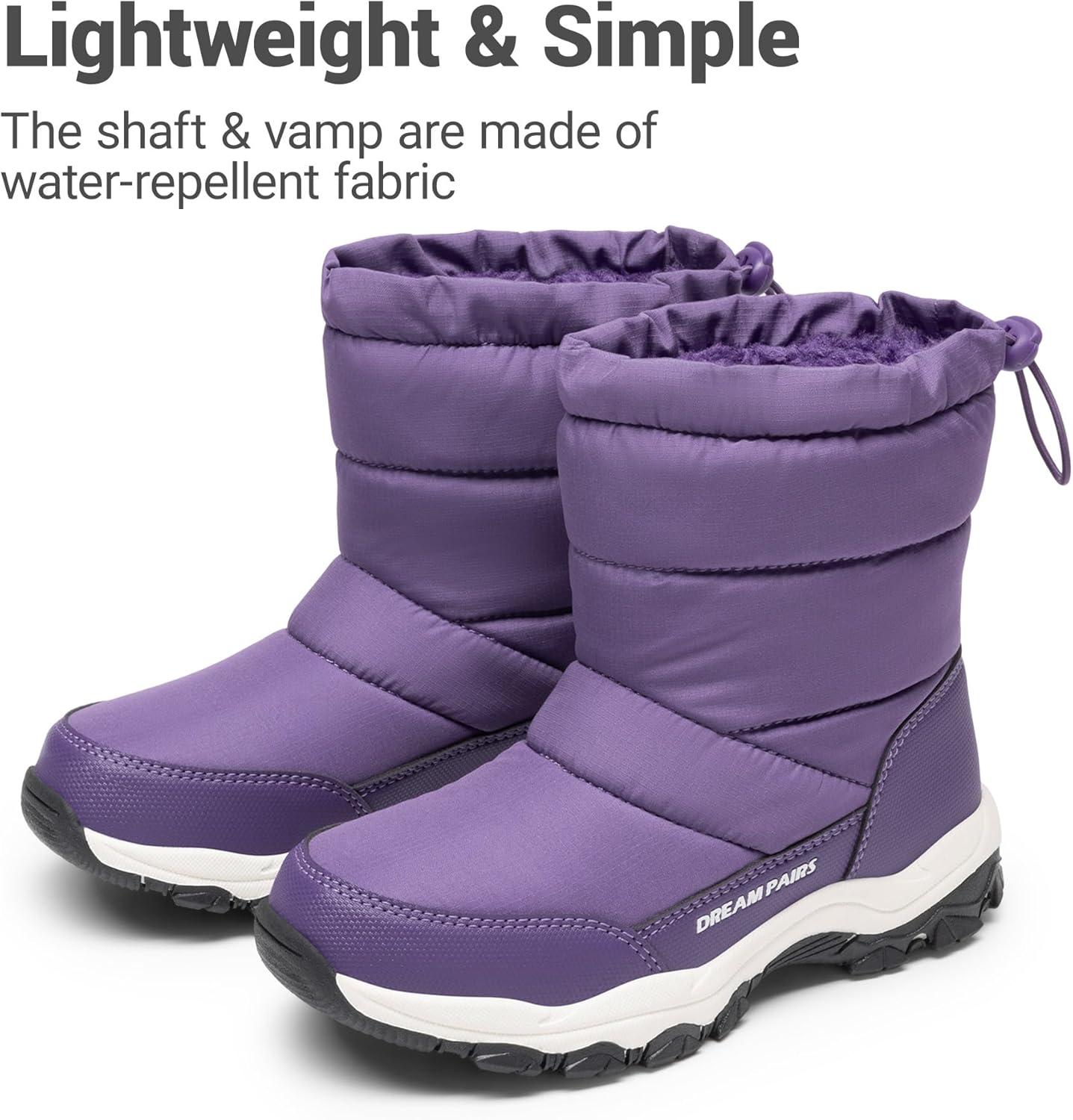 DREAM PAIRS Boys Girls Snow Boots Lightweight Slip Resistant Mid Calf Winter Shoes for Little/Big Kid(Purple)