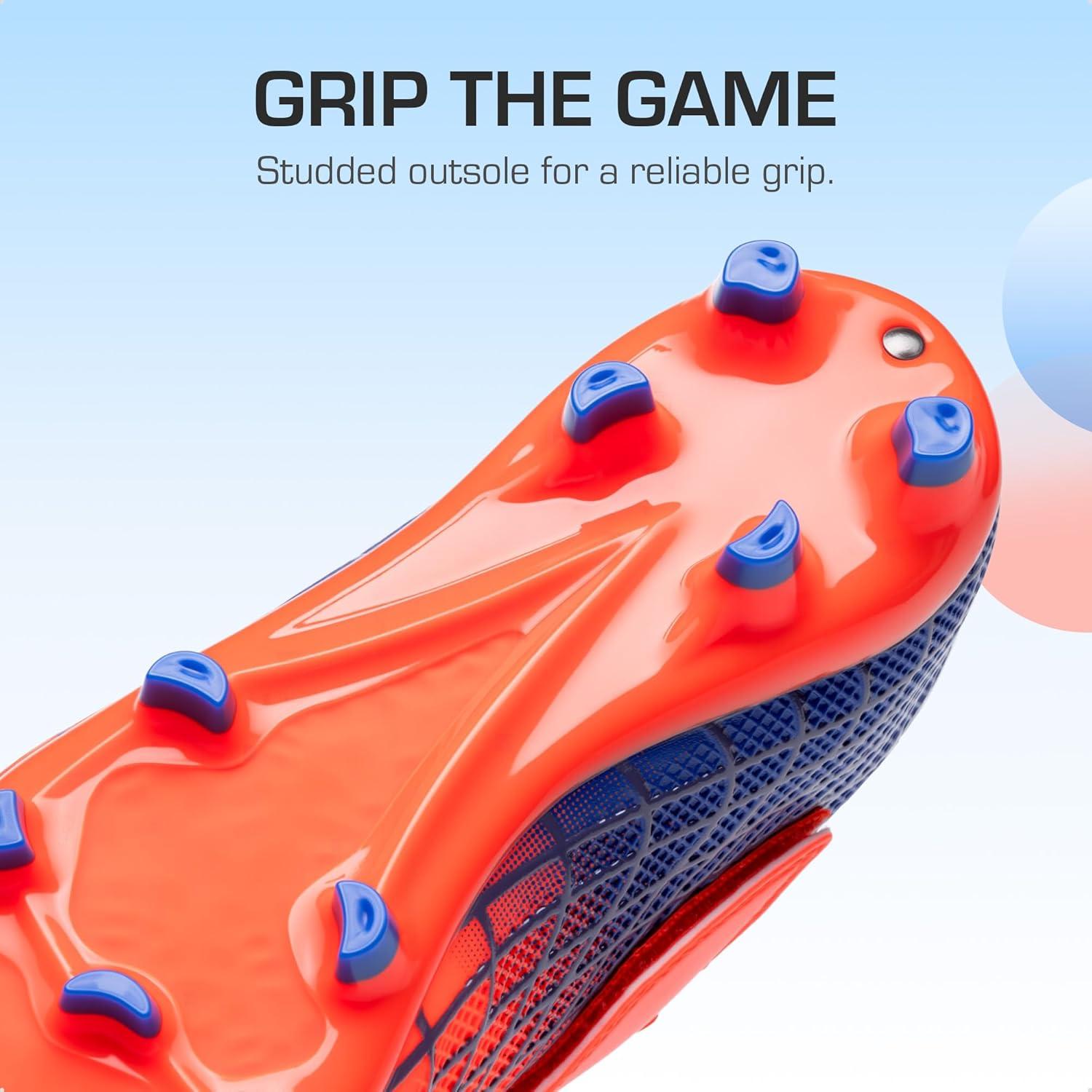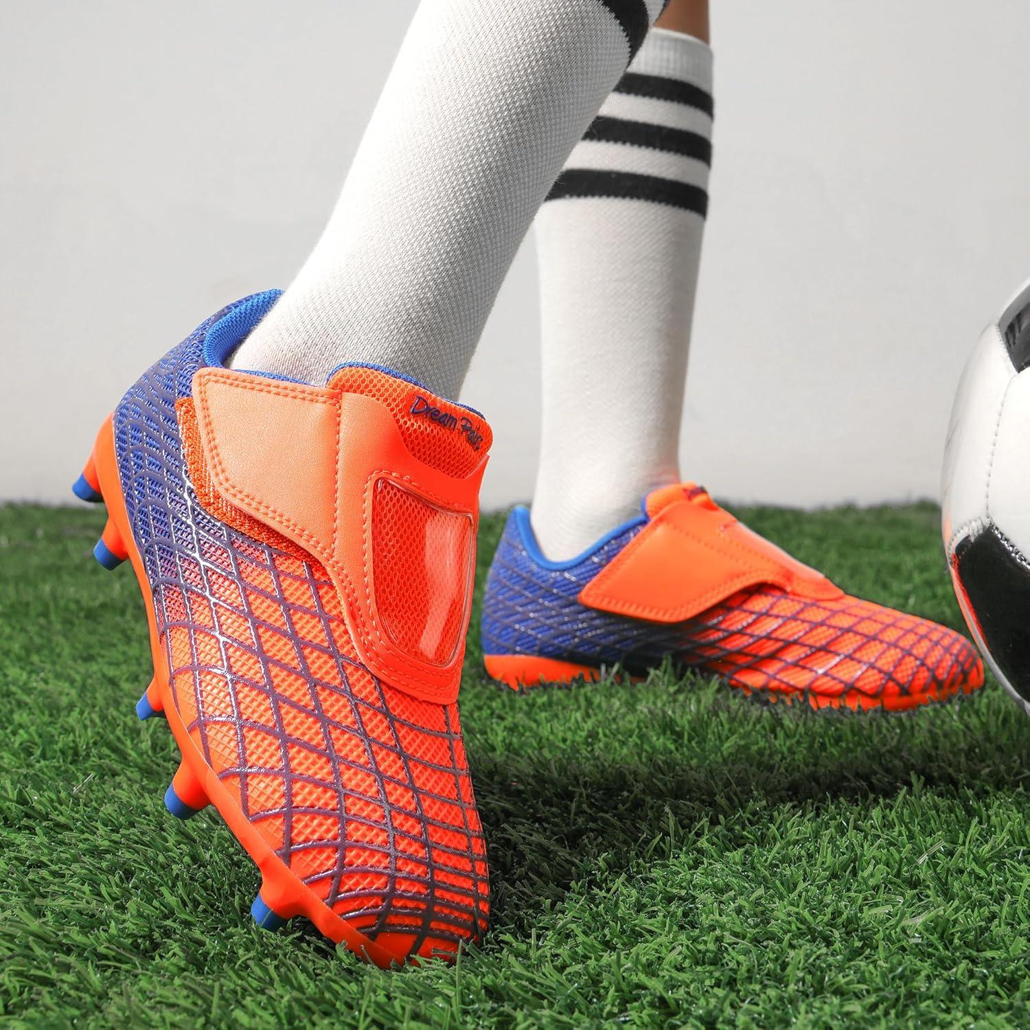 DREAM PAIRS Boys Girls Soccer Cleats Firm Ground Kids Youth Athletic Outdoor Football Shoes(Orange/Blue)