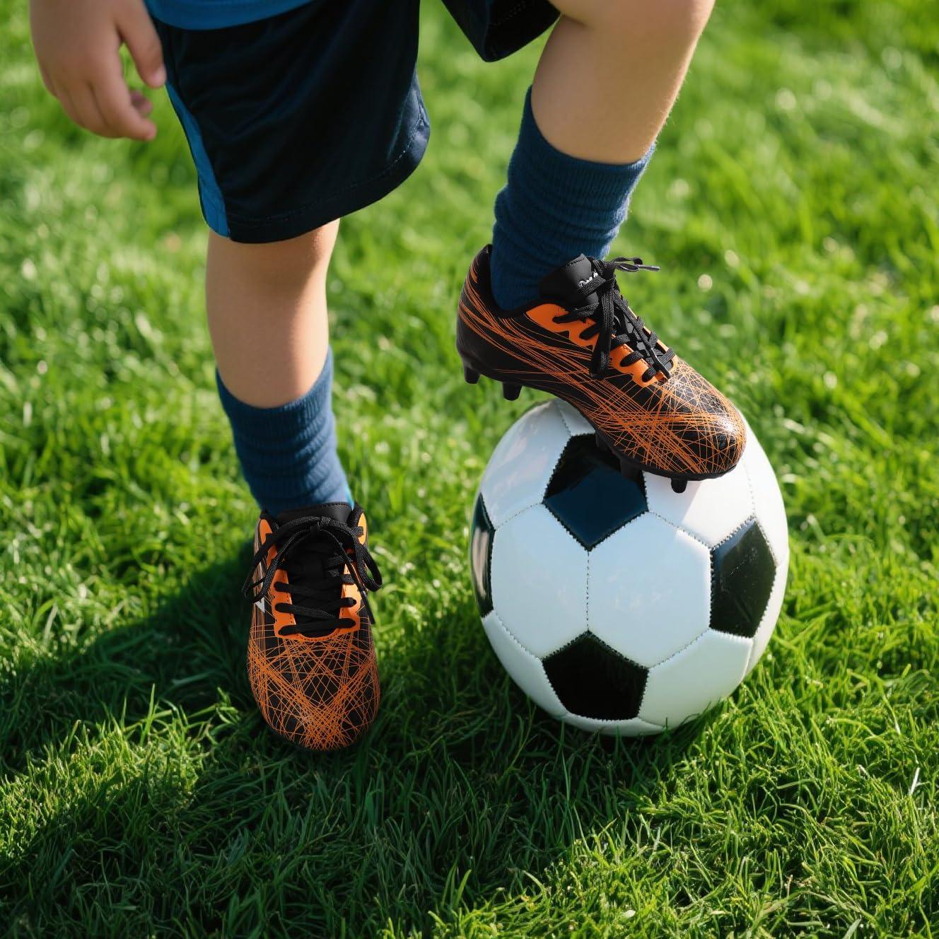 DREAM PAIRS Boys Girls Soccer Cleats Kids Youth Firm Ground Football Shoes for Little/Big Kid(Black/Orange)