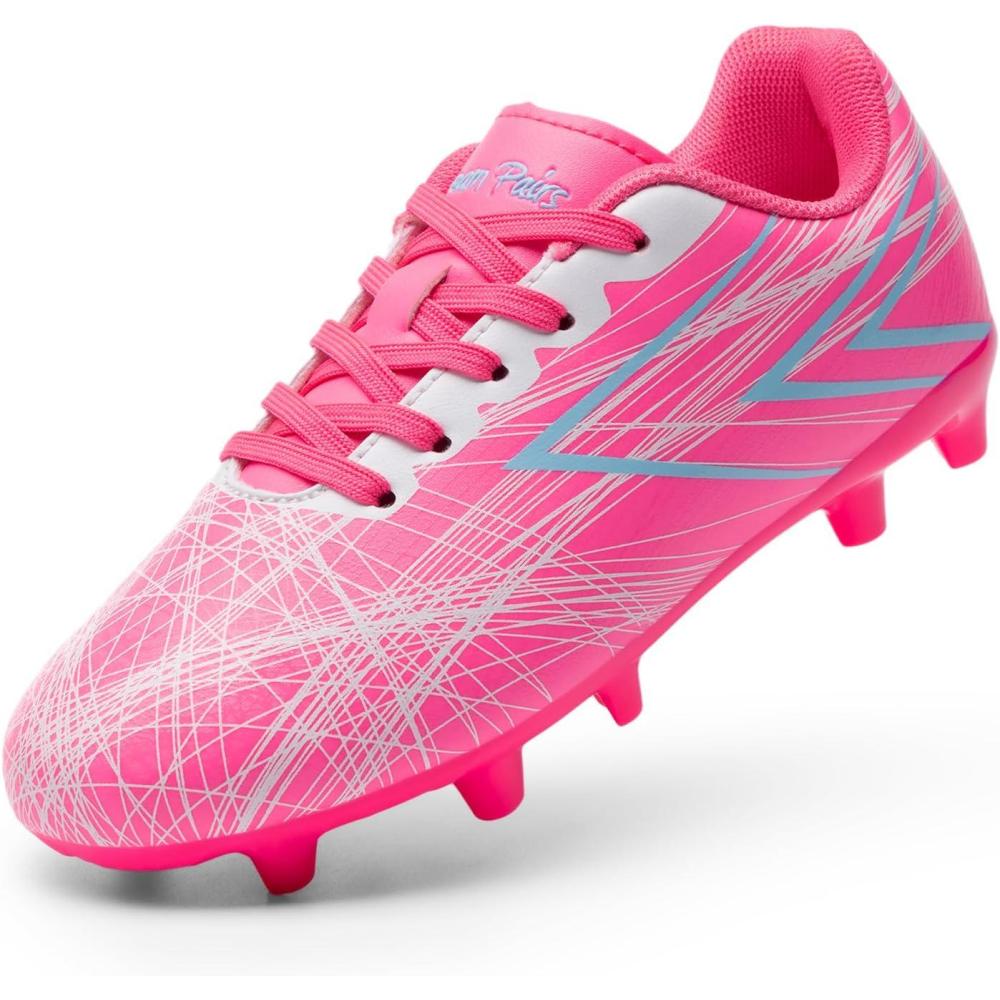 DREAM PAIRS Boys Girls Soccer Cleats Kids Youth Firm Ground Football Shoes for Little/Big Kid(Hot Pink)