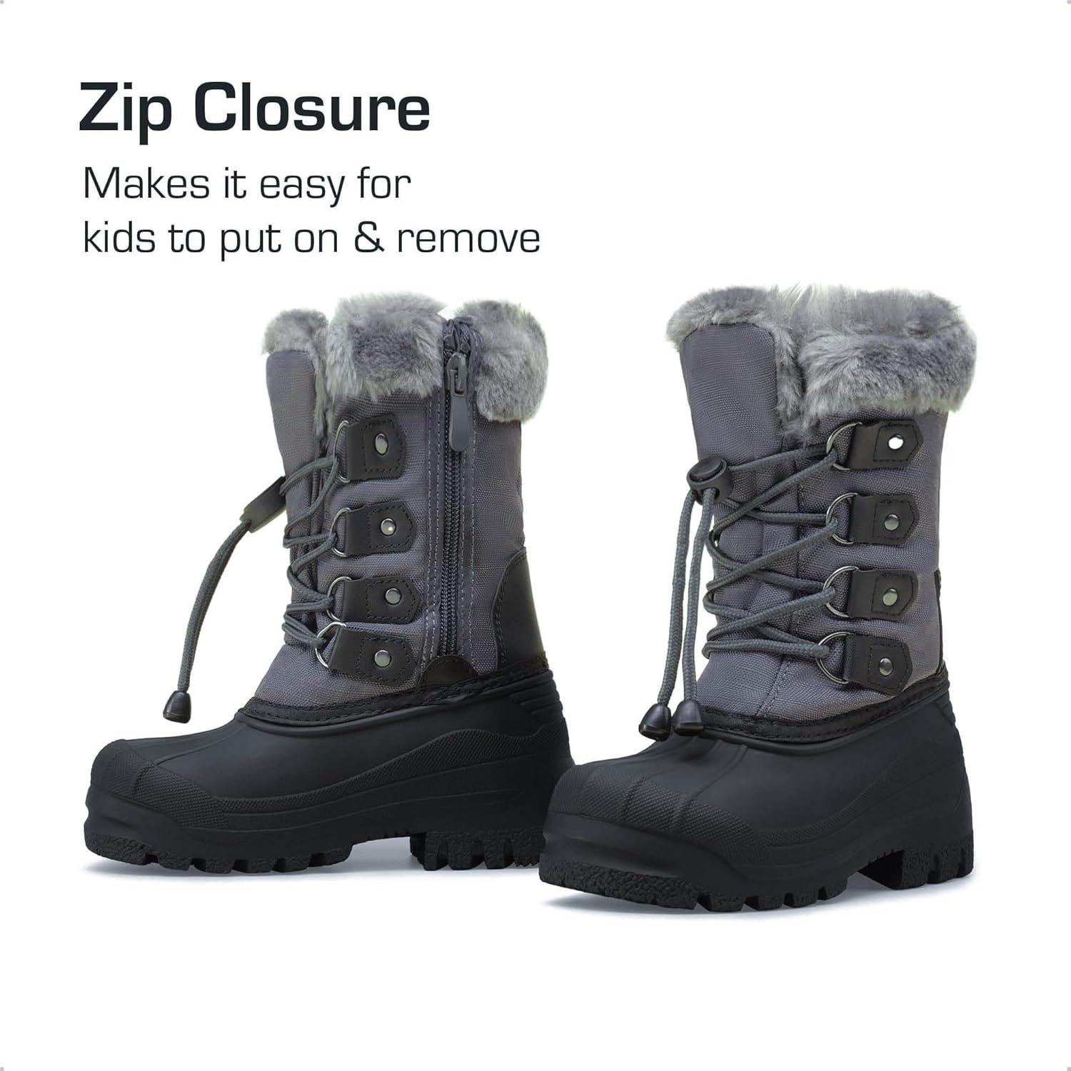 DREAM PAIRS Boys & Girls Waterproof Winter Snow Boots for Little Kid/Big Kid(Grey)