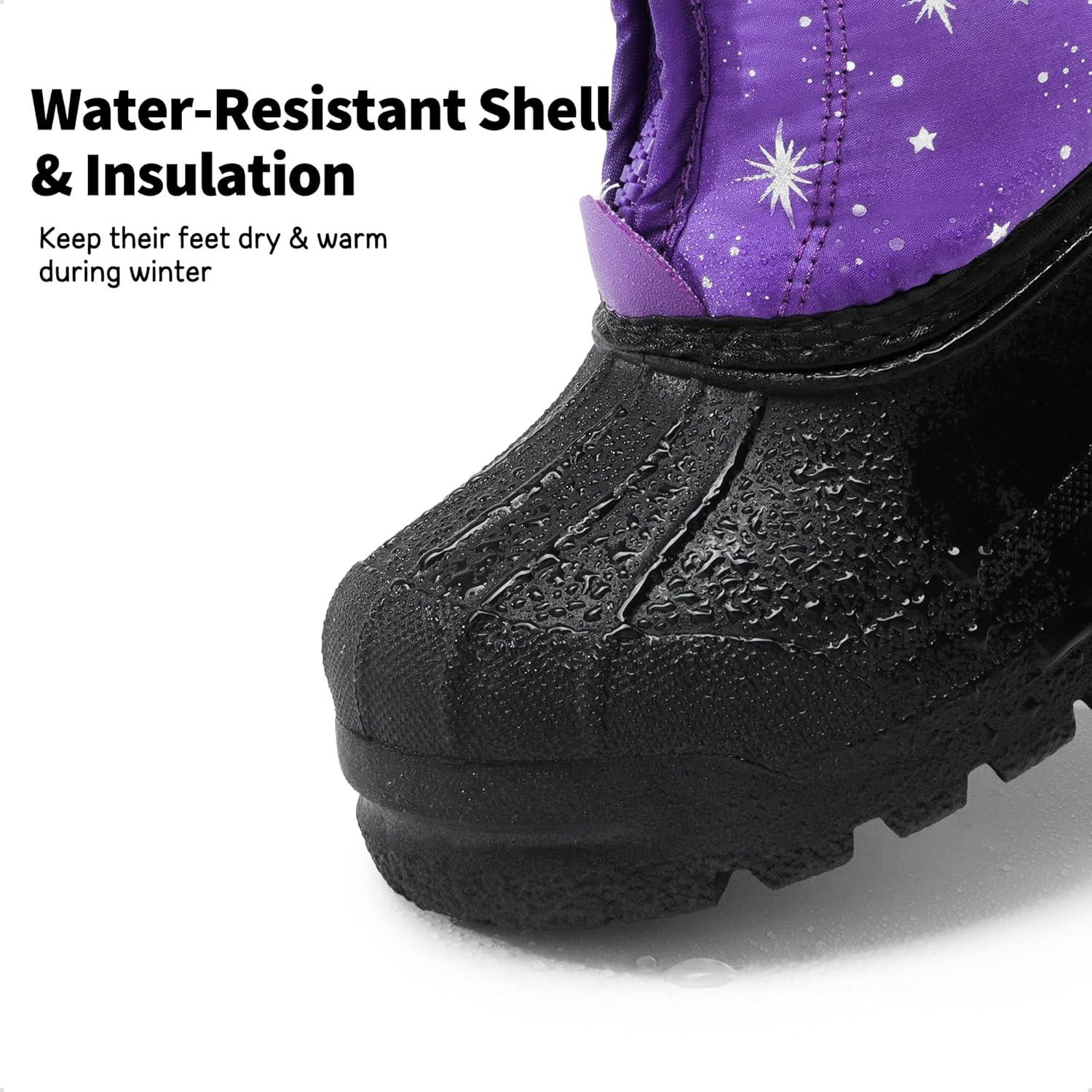 DREAM PAIRS Boys Girls Waterproof Winter Snow Boots(Purple/Multi)