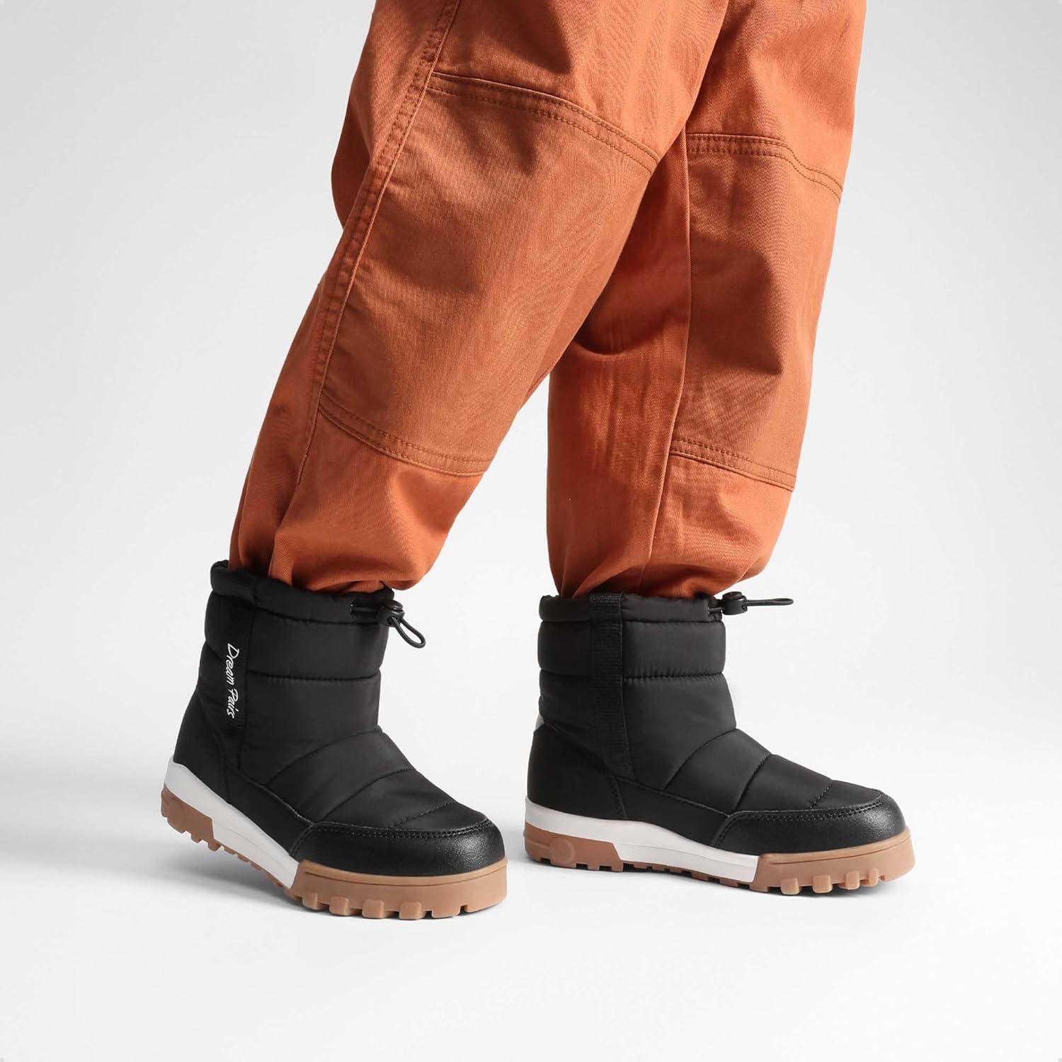 DREAM PAIRS Boys Girls Winter Snow Boots Slip Resistant Outdoor Cold Weather Boots with Faux Fur Lining(Black)