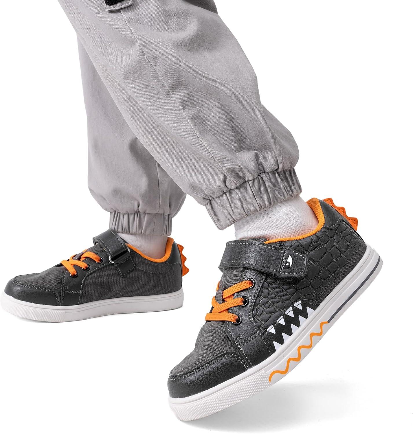 DREAM PAIRS Boys Sneakers Little Kids Toddler Shoes Storybook Causal Walking Shoes Non-Slip with Hook and Loop(Grey/Orange)