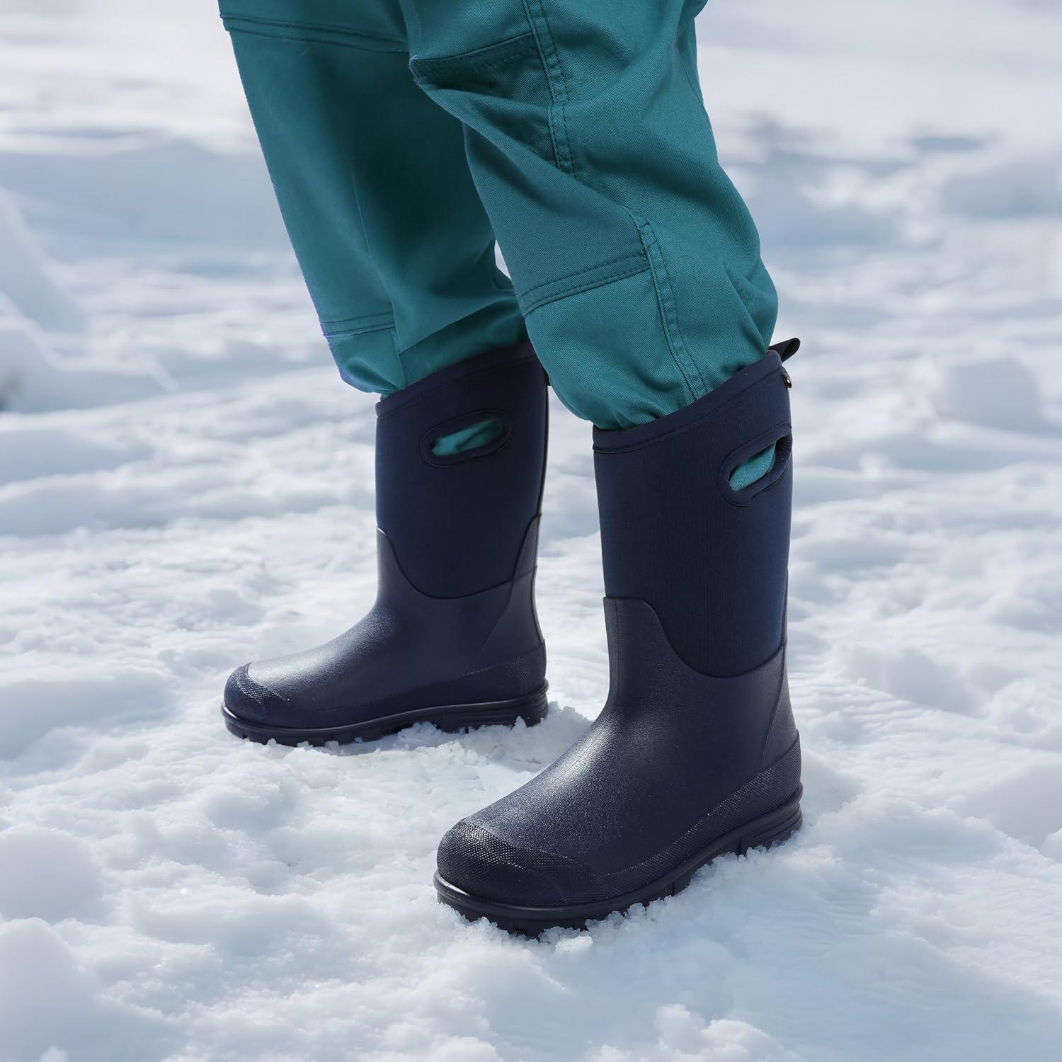 DREAM PAIRS Boys Waterproof Boots Outdoor Faux Fur Lining Shoes with Handles for Rain Snow Winter Muck Mud and Cold Weather for Little/Big Kids(Navy)