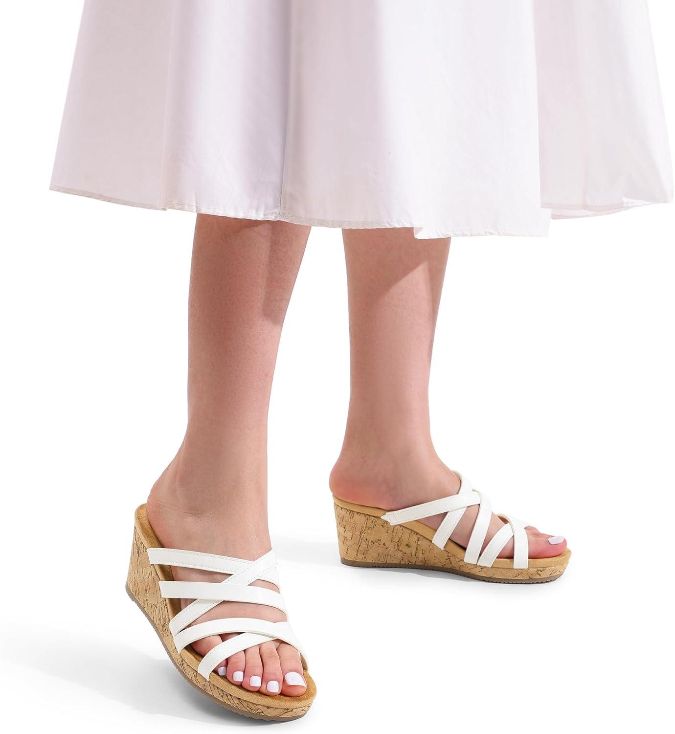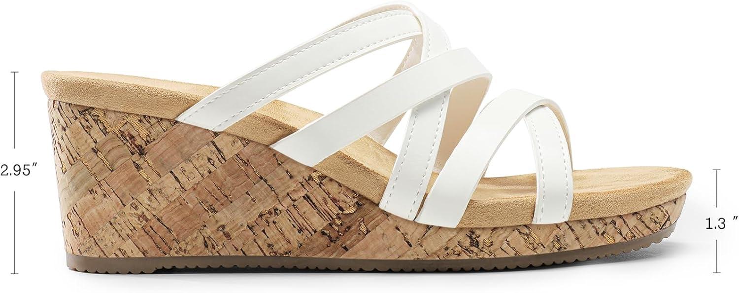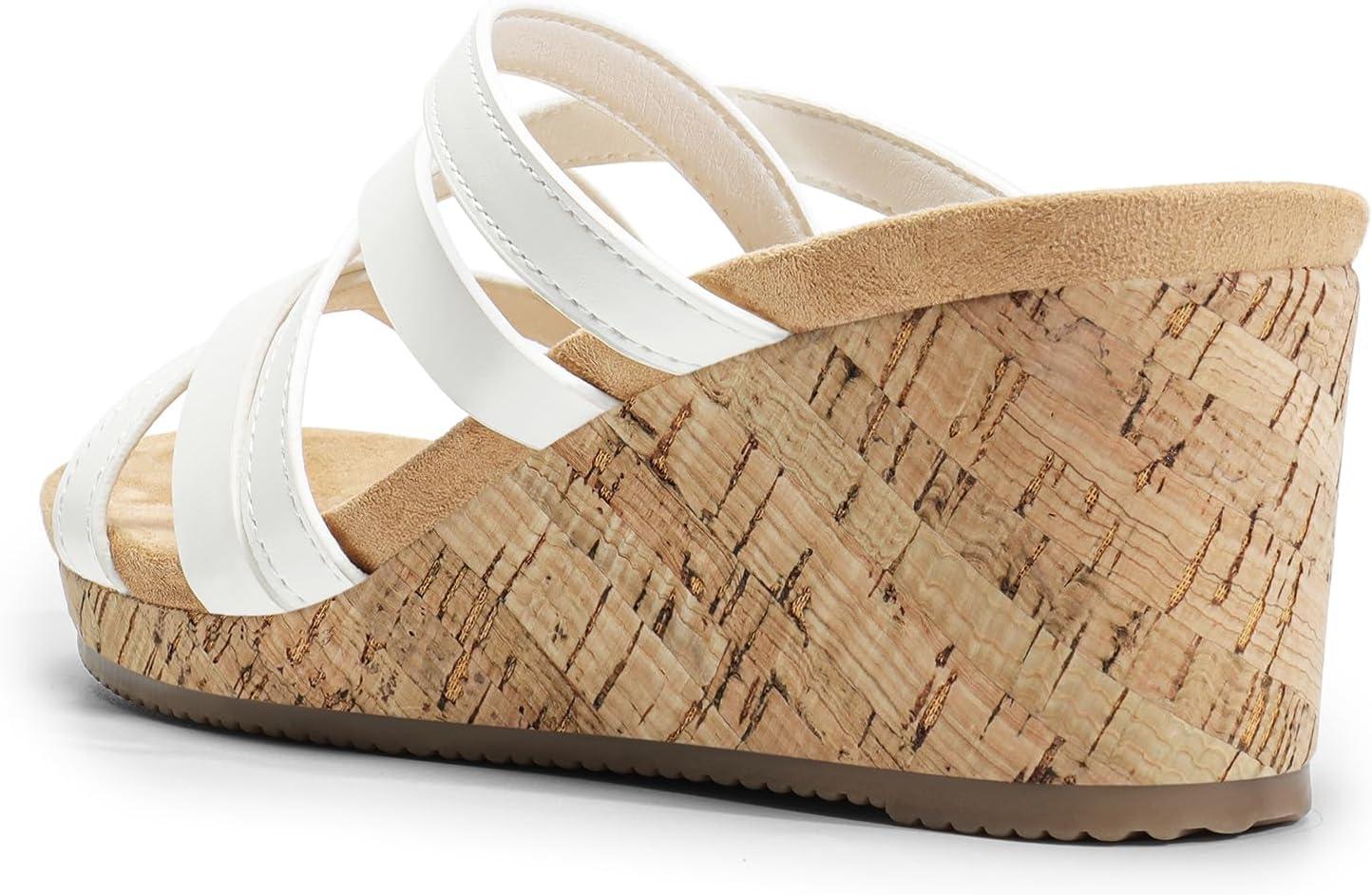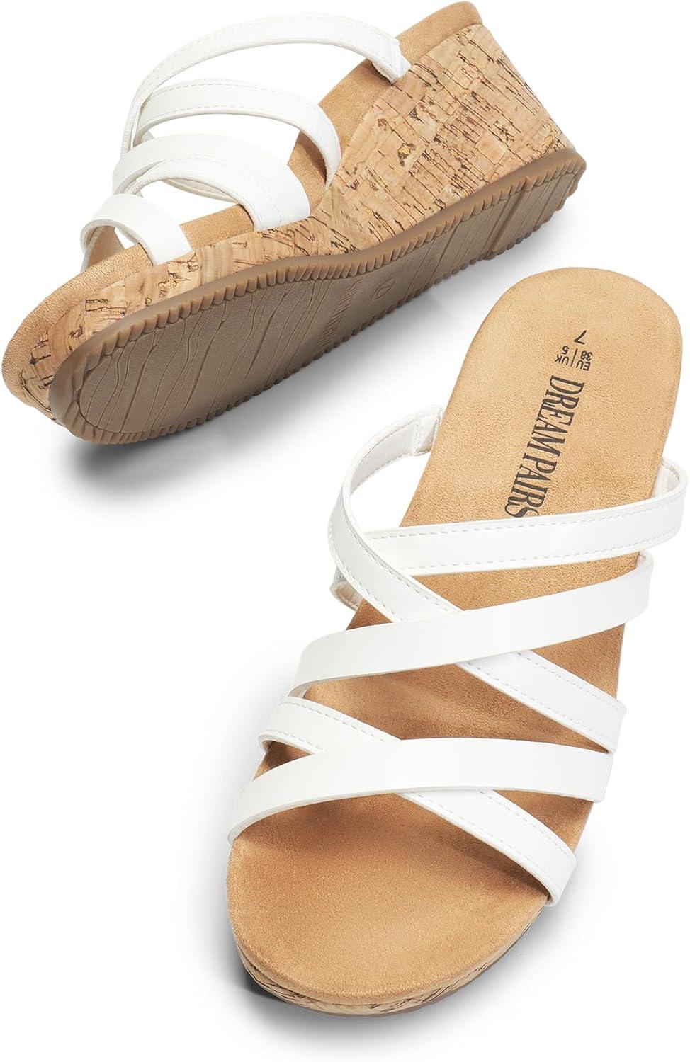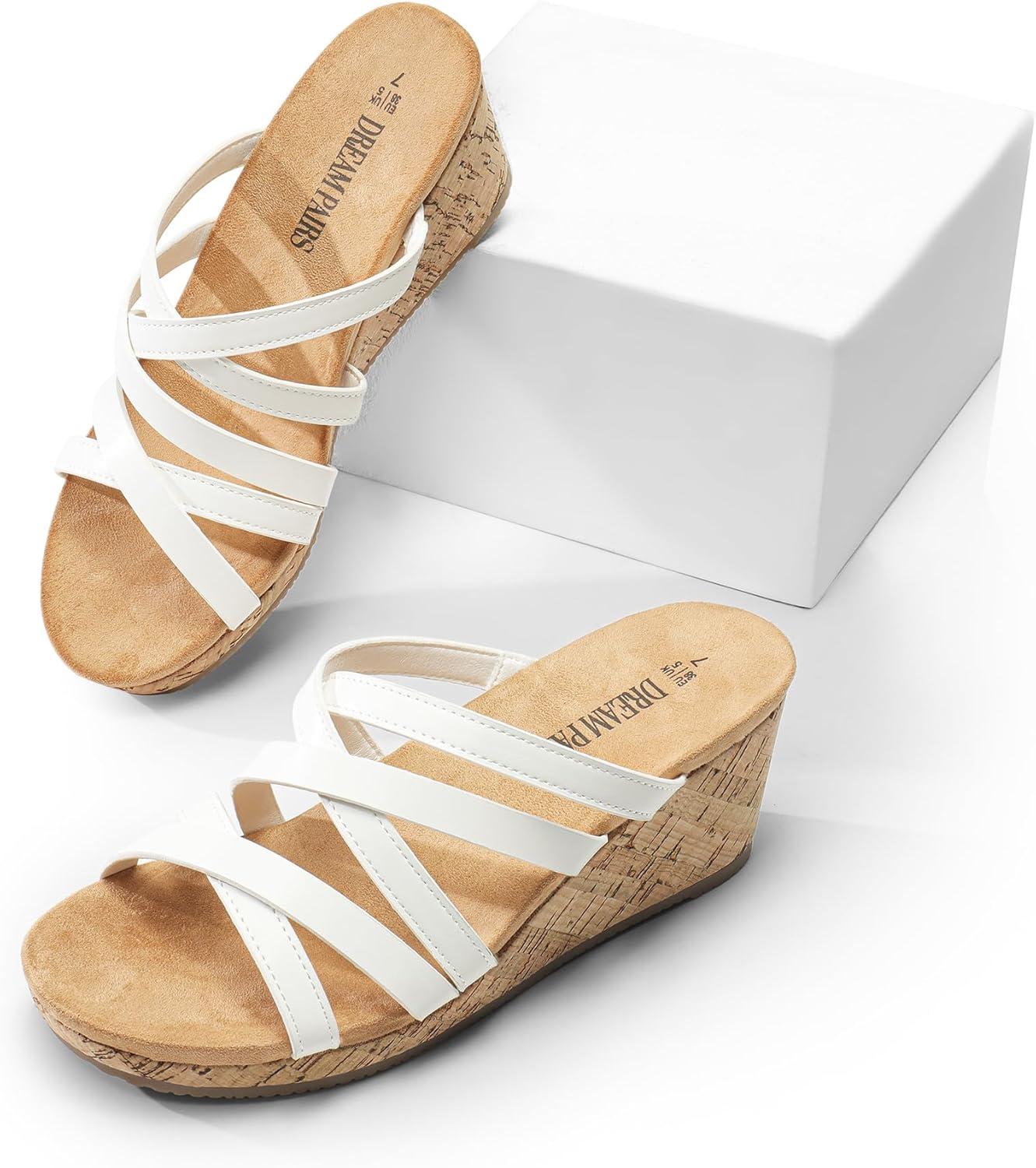 DREAM PAIRS Dressy Wedge Sandals for Women Casual Summer, Comfort Cork Strappy Platform Slides Sandals(White)