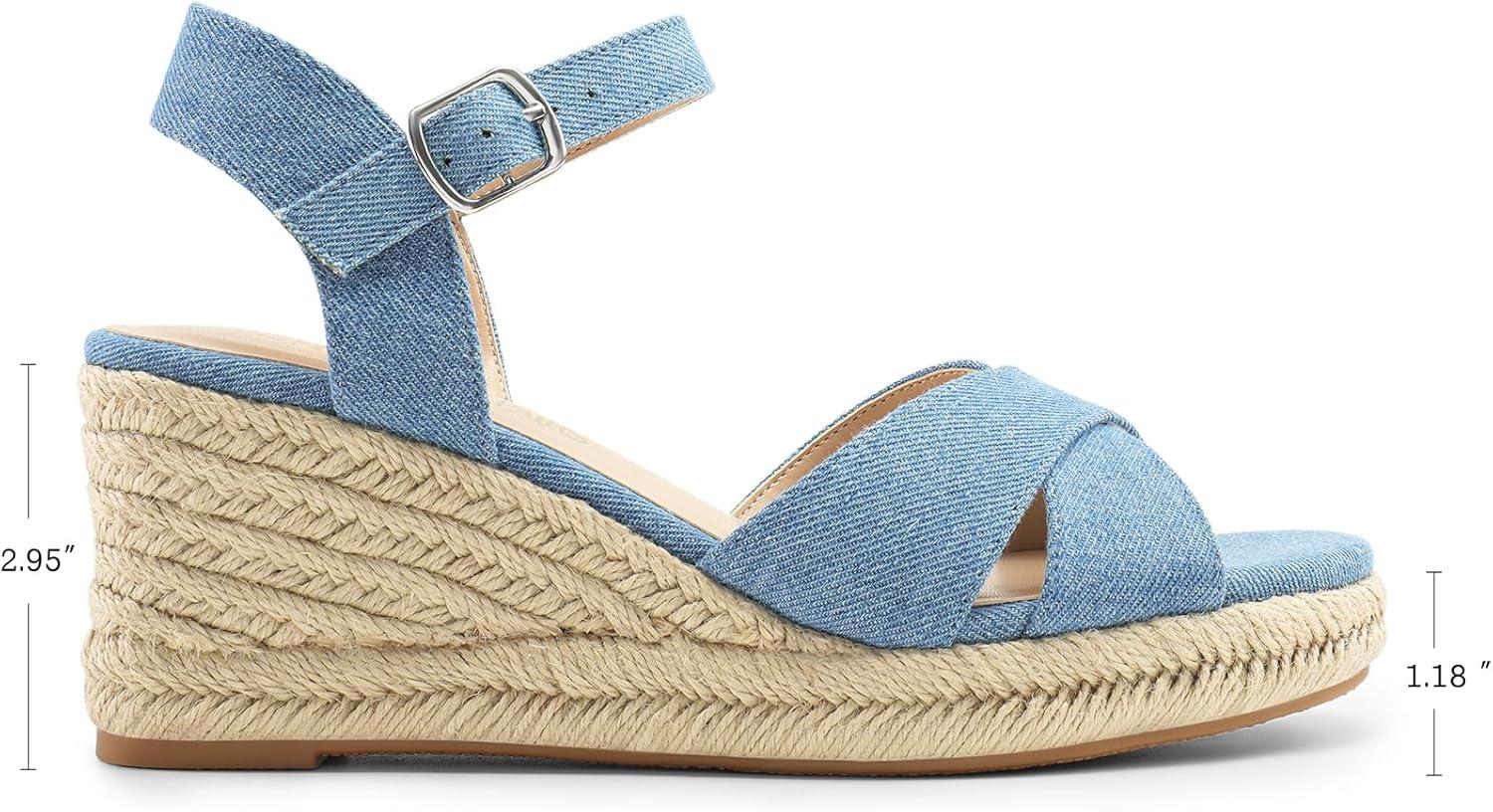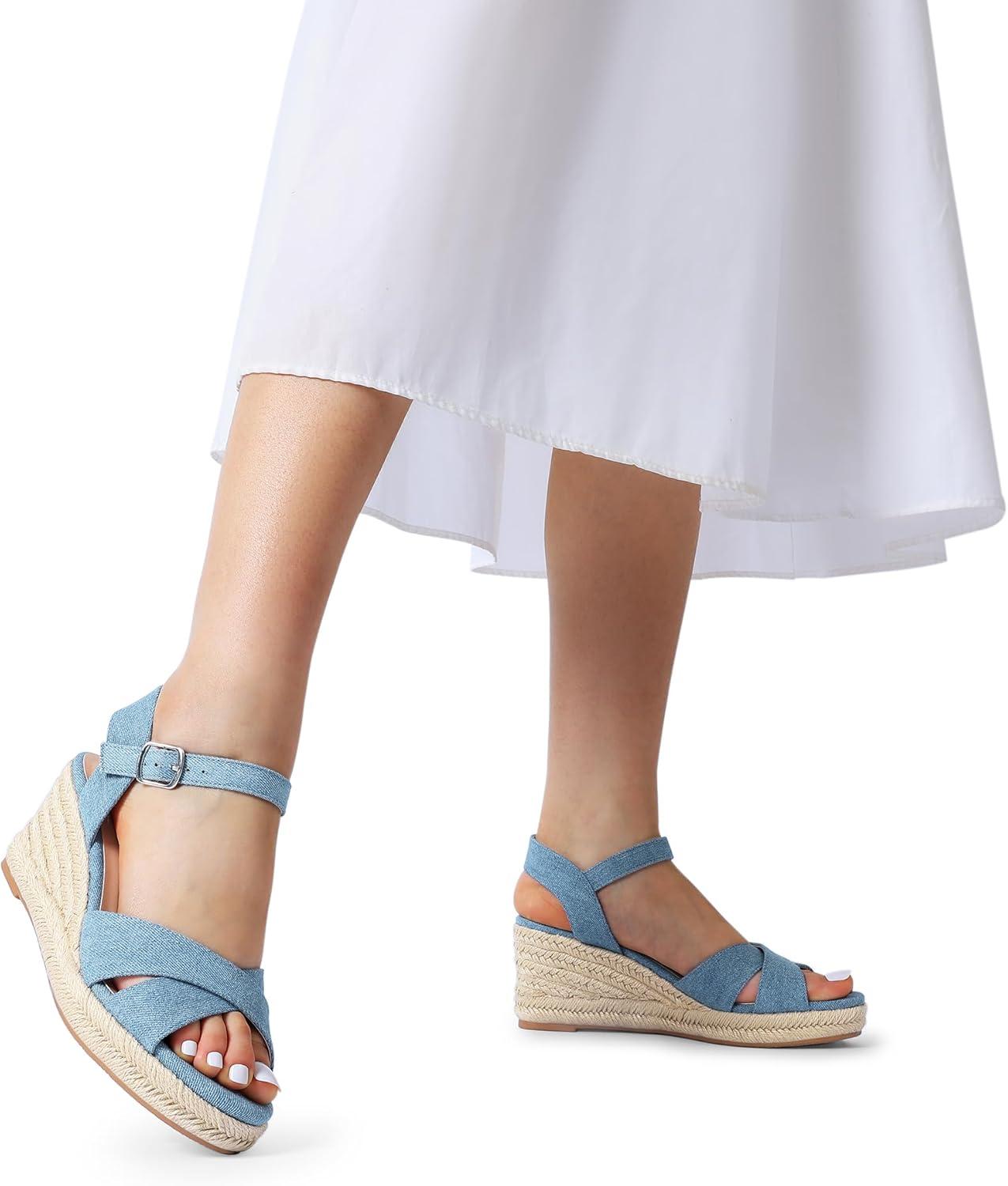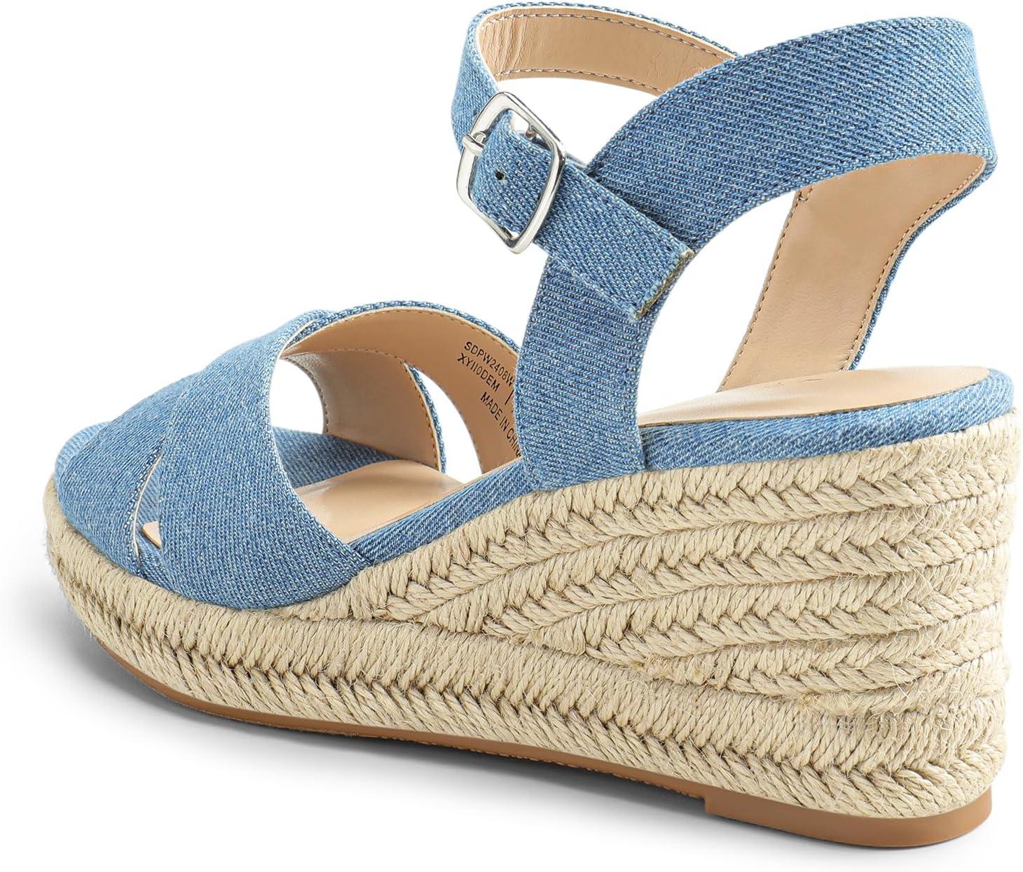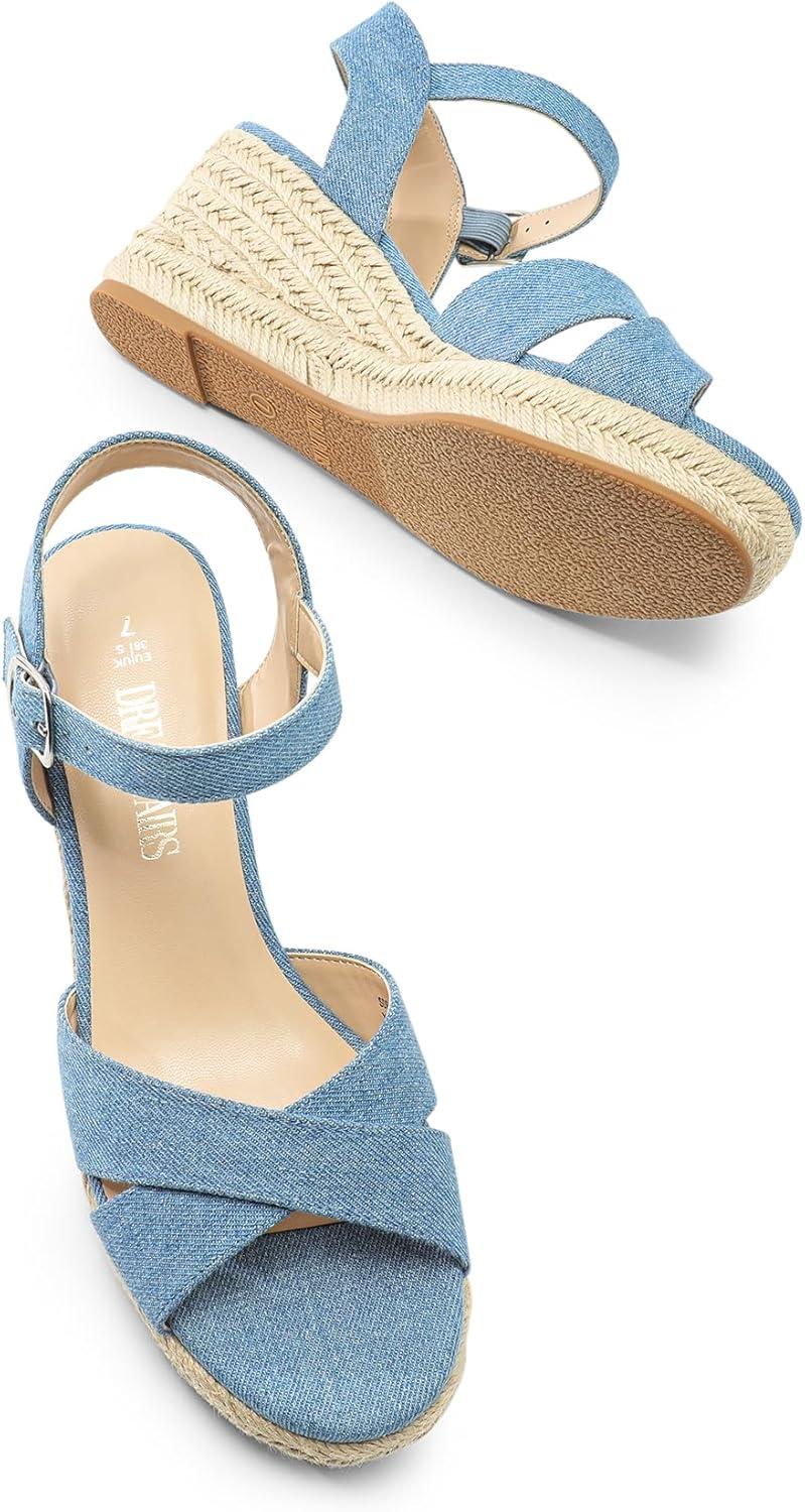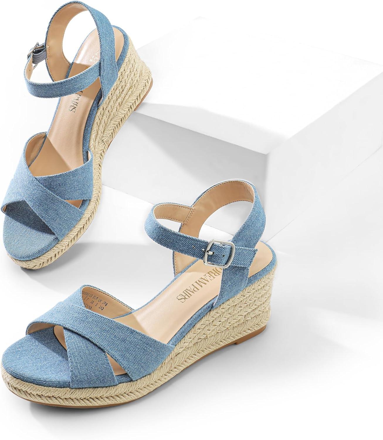 DREAM PAIRS Espadrille Dressy Wedge Sandals, Women’s Platform Sandals Casual Summer, Comfortable High Heeled Wedges with Adjustable Buckle(Denim-canvas)