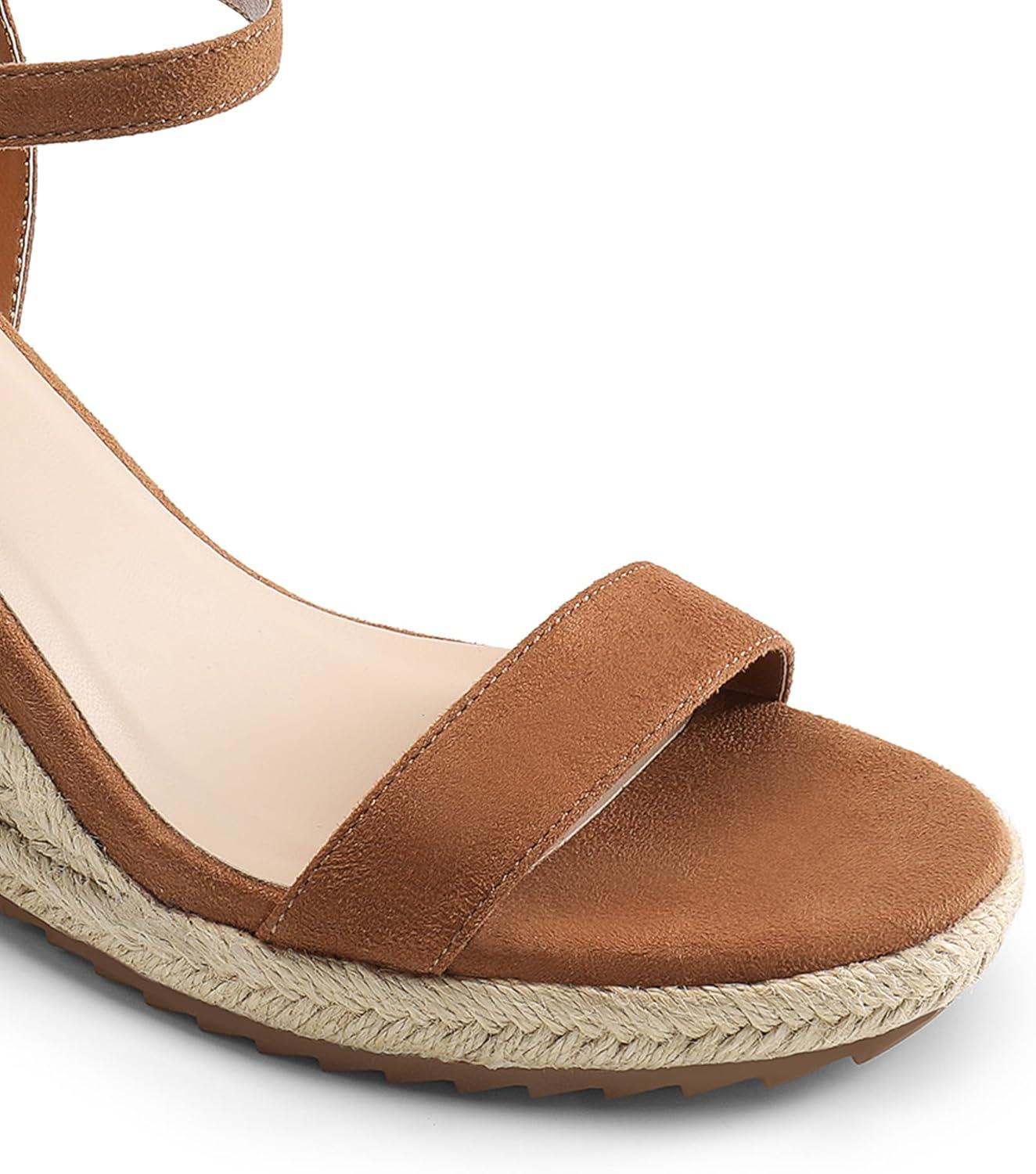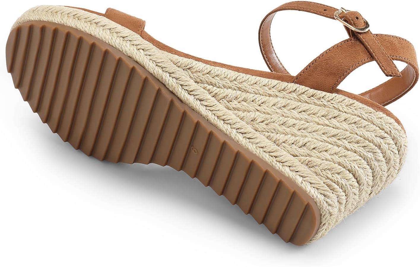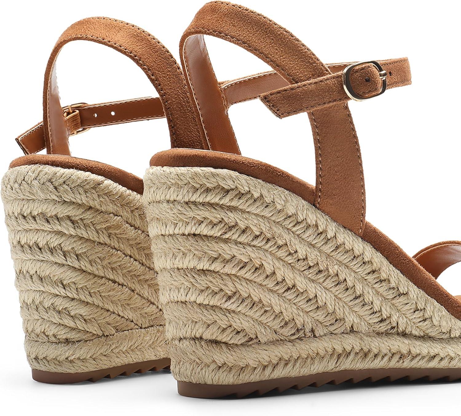 DREAM PAIRS Espadrilles Wedge Sandals for Women, Women’s Open Toe Summer Dressy Sandals with Adjustable Ankle Strap and Soft Footbed(Brown)