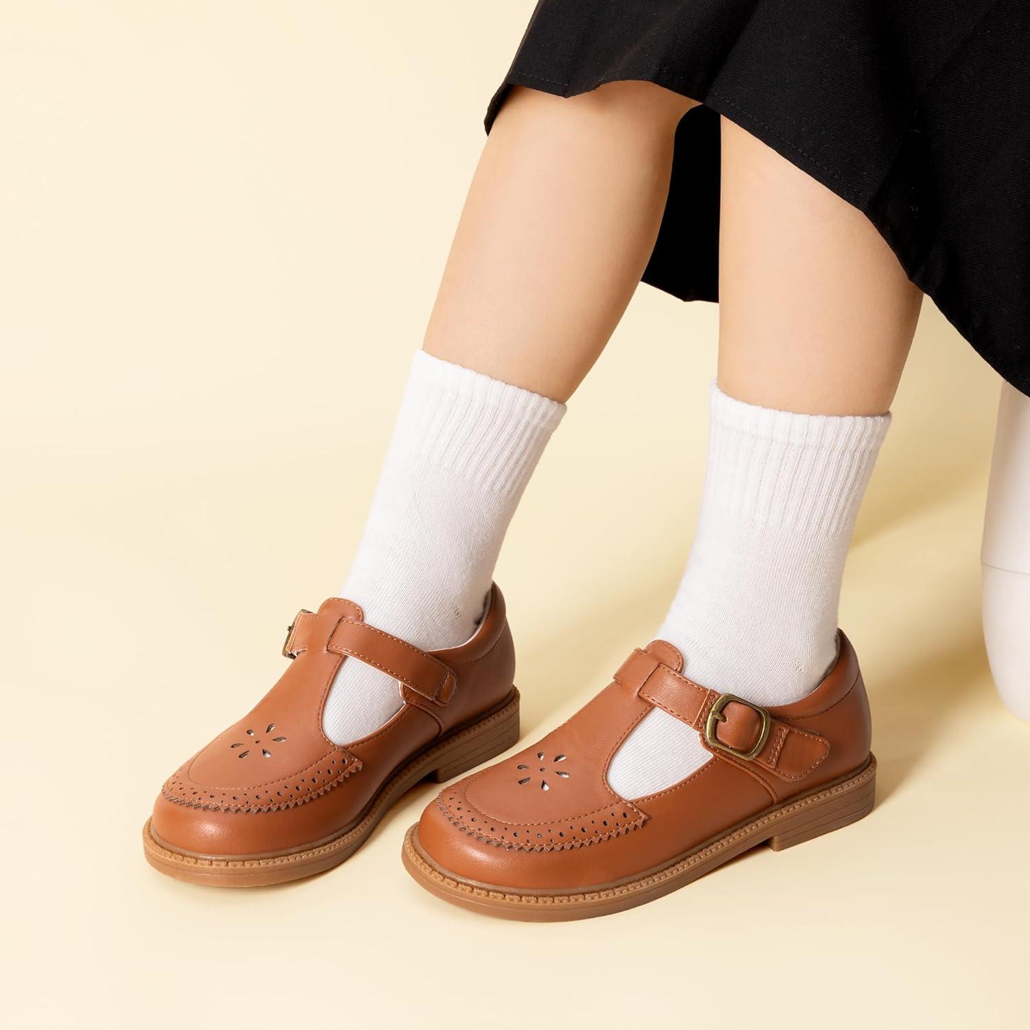 DREAM PAIRS Girl Mary Jane Dress Shoes – Ballet Flats for Girl School Uniform Shoes for Toddler Little Girls(Brown)