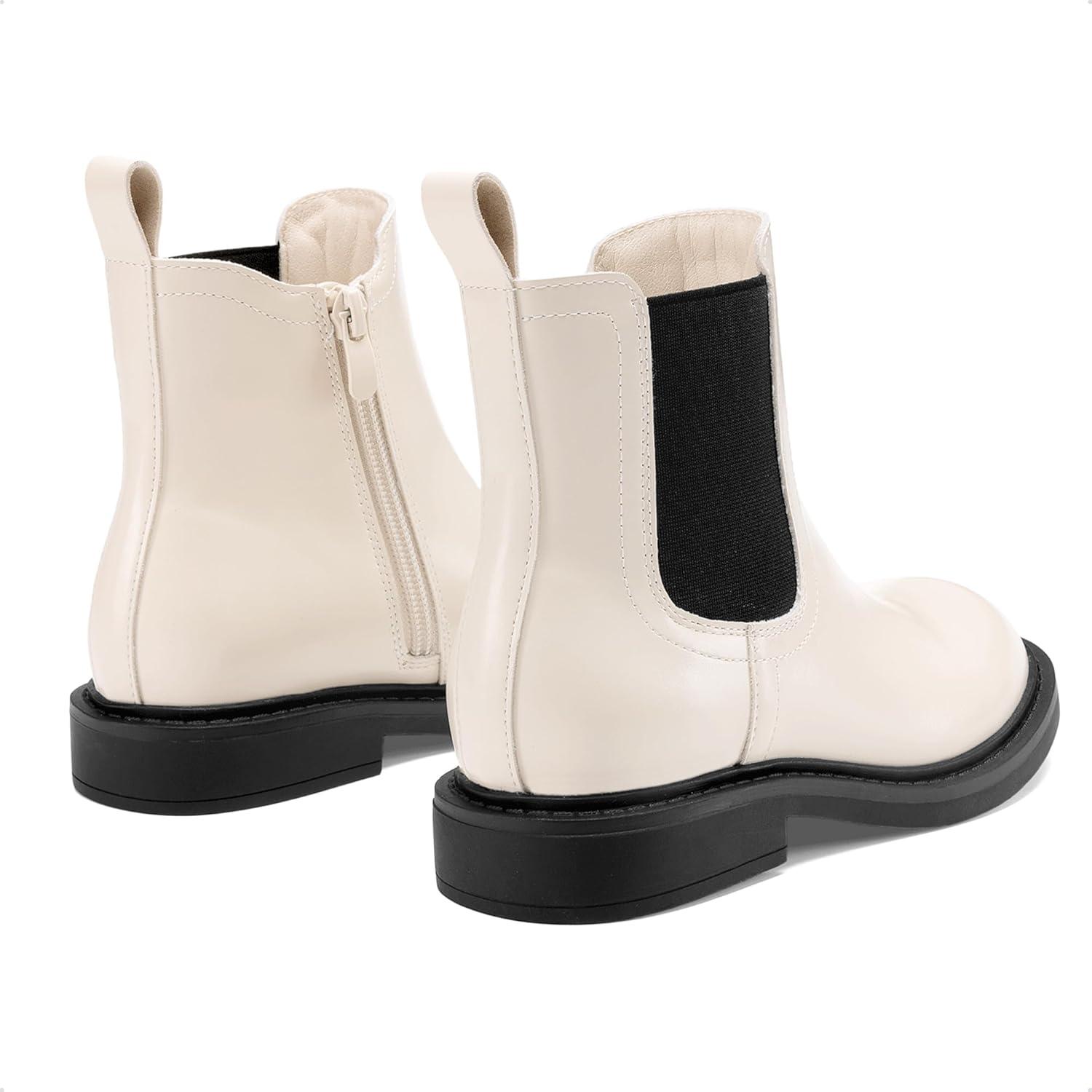 DREAM PAIRS Girls Ankle Boots with Side Zipper Chelsea Booties Low Heels Girl Fashion Shoes for Toddler/Little Kid/Big Kid(White/Black)