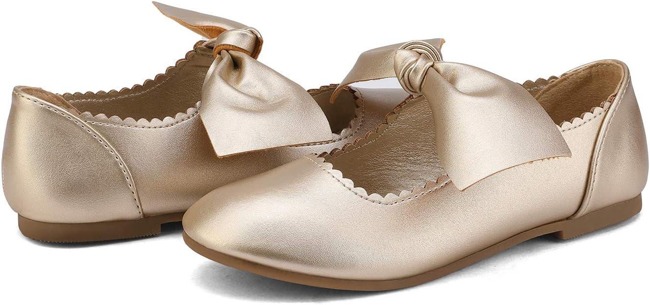 DREAM PAIRS Girls Ballerina Flats Mary Jane Front Bow Dress Shoes(Gold)