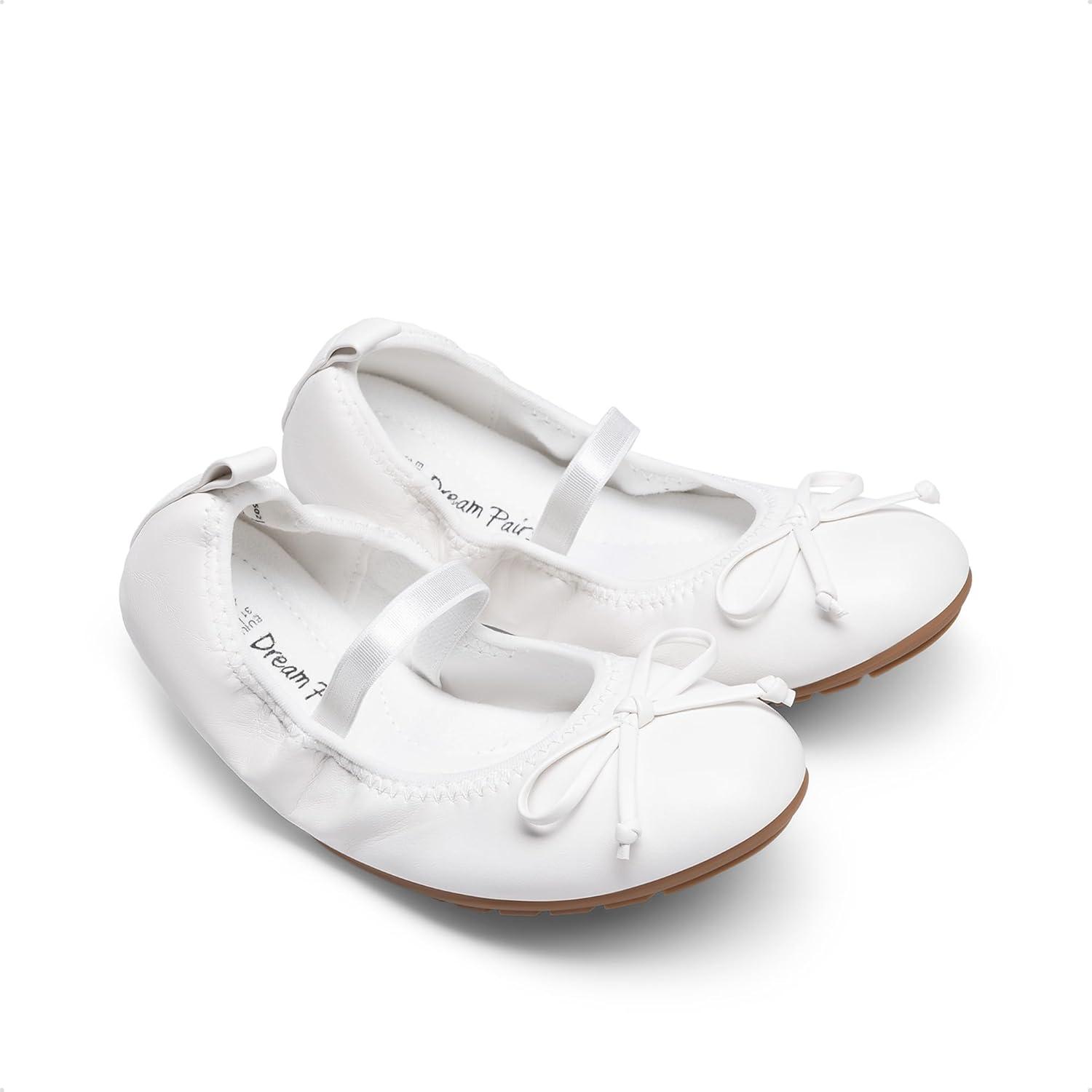DREAM PAIRS Girls Ballet Flats Dress Shoes Mary Janes Ballerina Shoes(White)