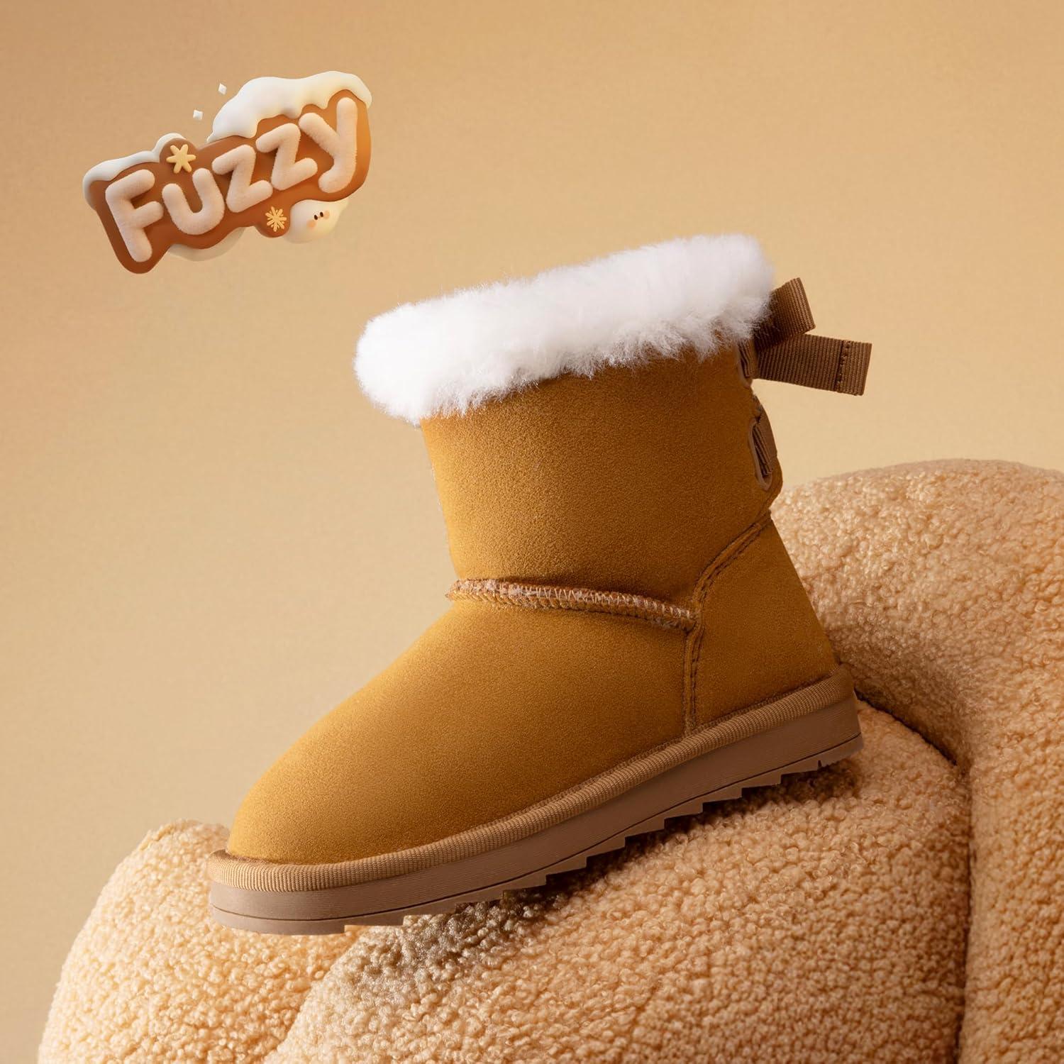 DREAM PAIRS Girls Boots Kids Winter Faux Fur Warm Snow Ankle FuzzyChic Kid’s Bow Boots for Toddler/Little Kid(Chestnut)