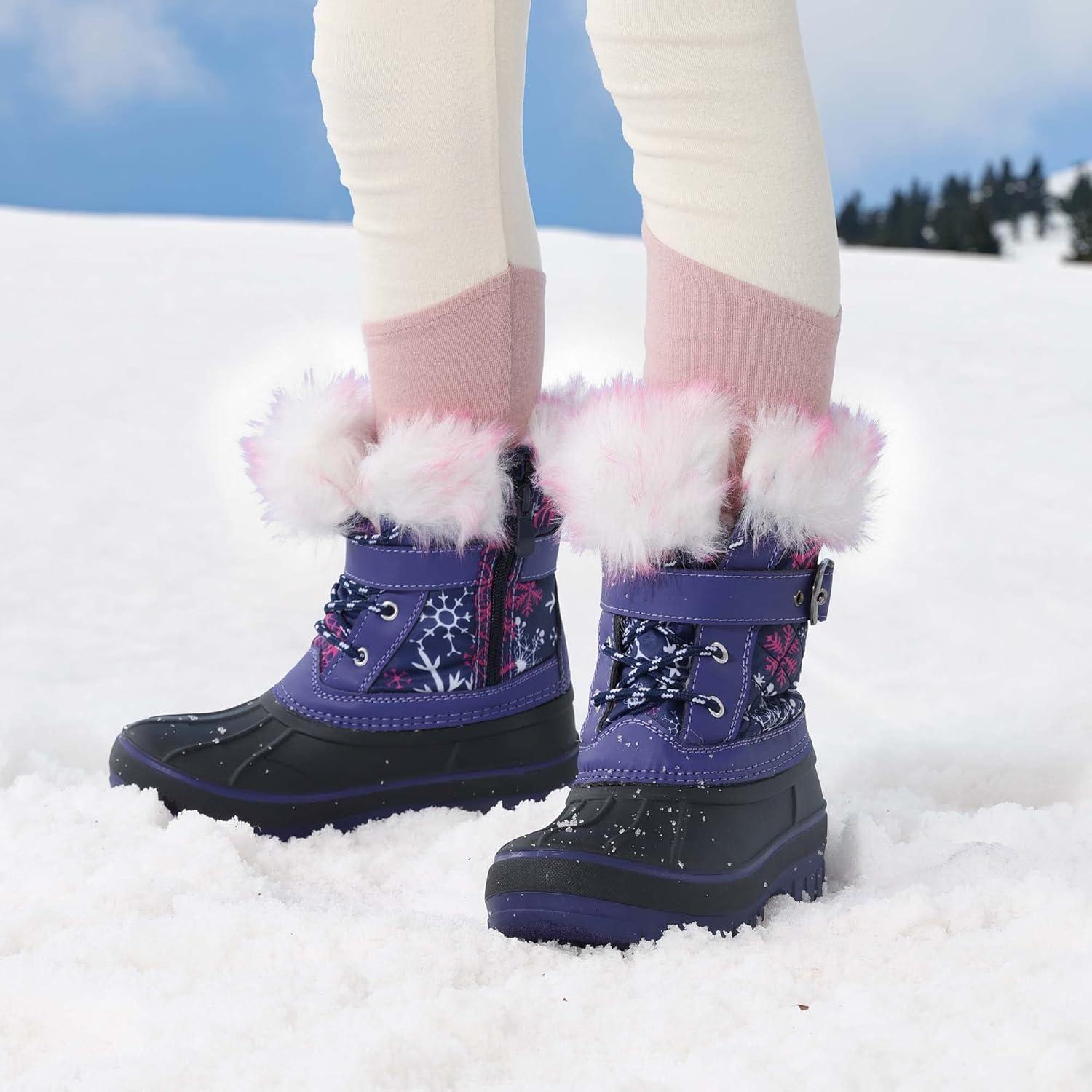 DREAM PAIRS Girls Boys Snow Boots Water-Resistant Outdoor Warm Cozy Anti-Slip Mid Calf Faux Fur Lining Winter Shoes for Little/Big Kids(Purple/Fuchsia)