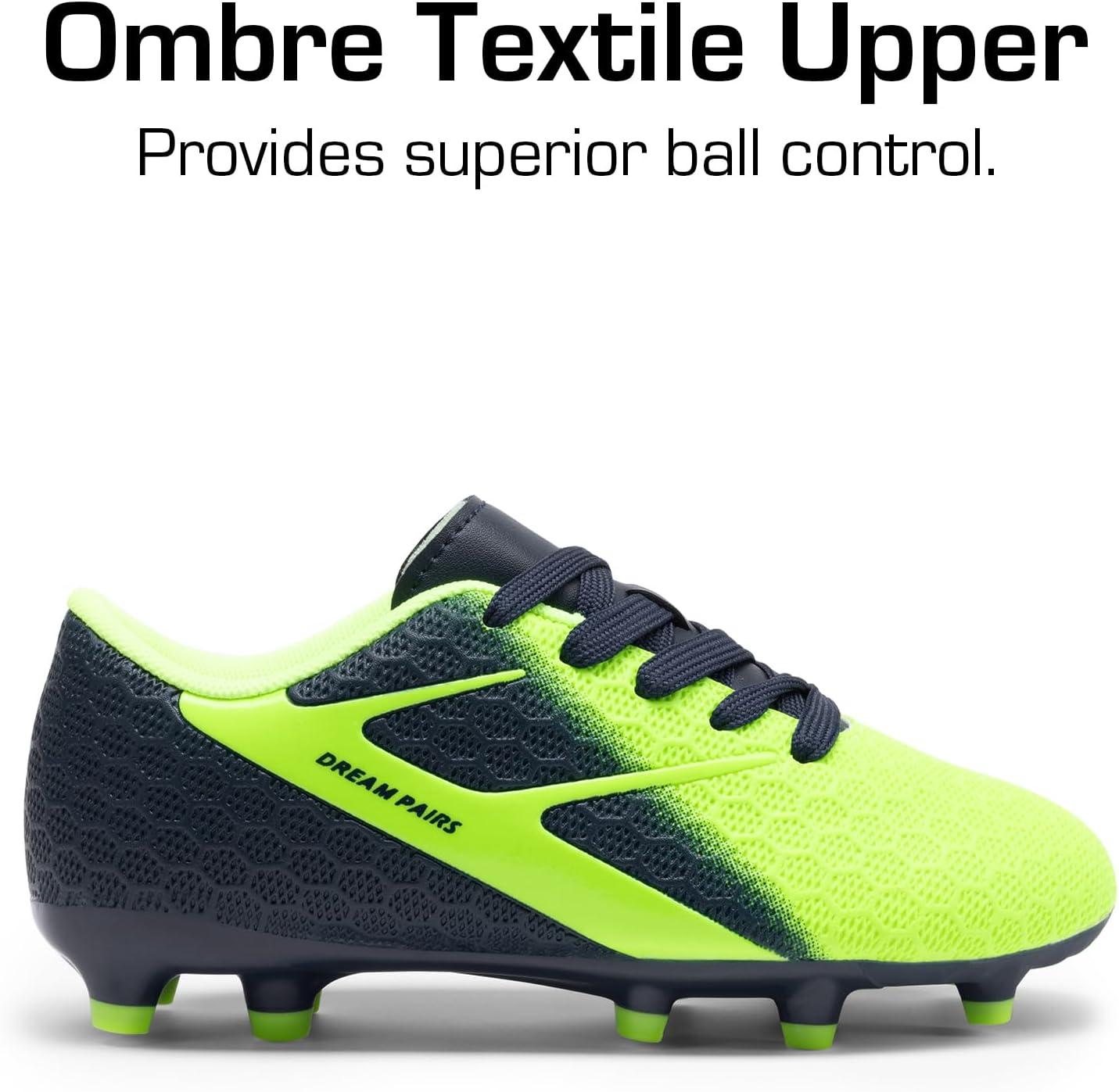 DREAM PAIRS Girls Boys Soccer Cleats Kids Firm Groud Football Toddler Youth Athletic Outdoor Training Shoes for Little/Big Kid(Navy/Neon Green)