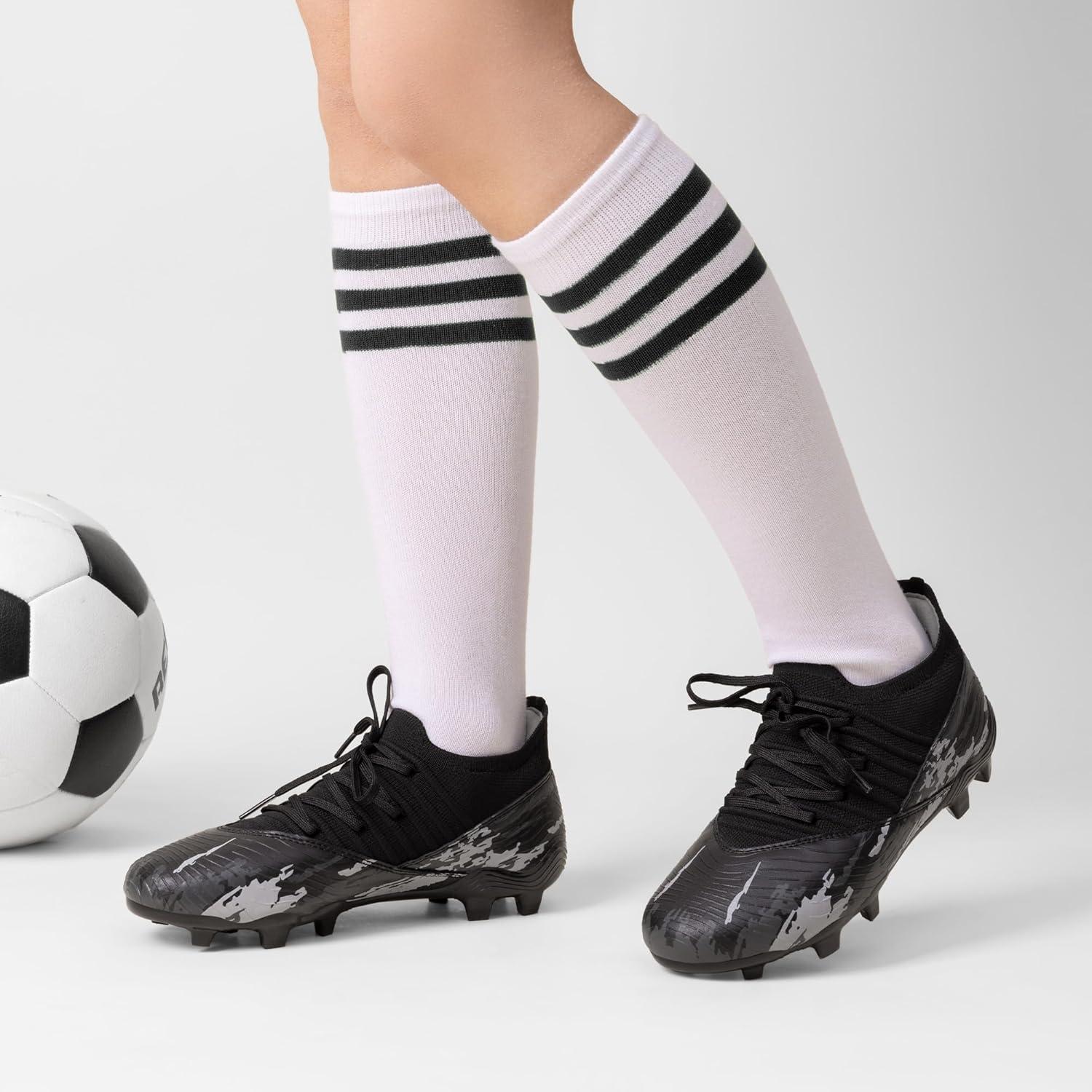 DREAM PAIRS Girls Boys Soccer Cleats Youth Firm Groud Outdoor Sports Athletic Mid-top Football Shoes for Little/Big Kid(Black)