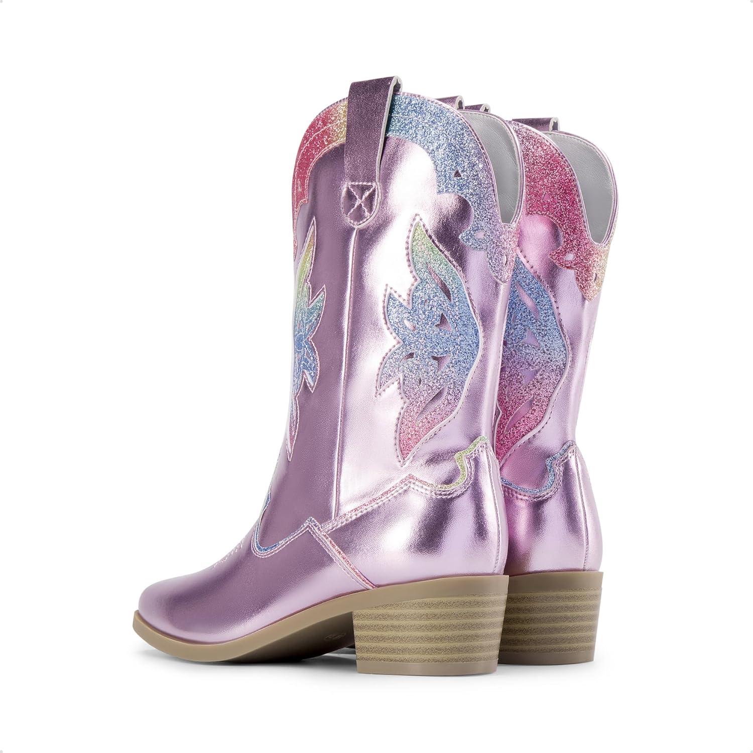 DREAM PAIRS Girls Cowgirl Cowboy Boots Western Fashion Mid Calf Boots(Pink/Rainbow)
