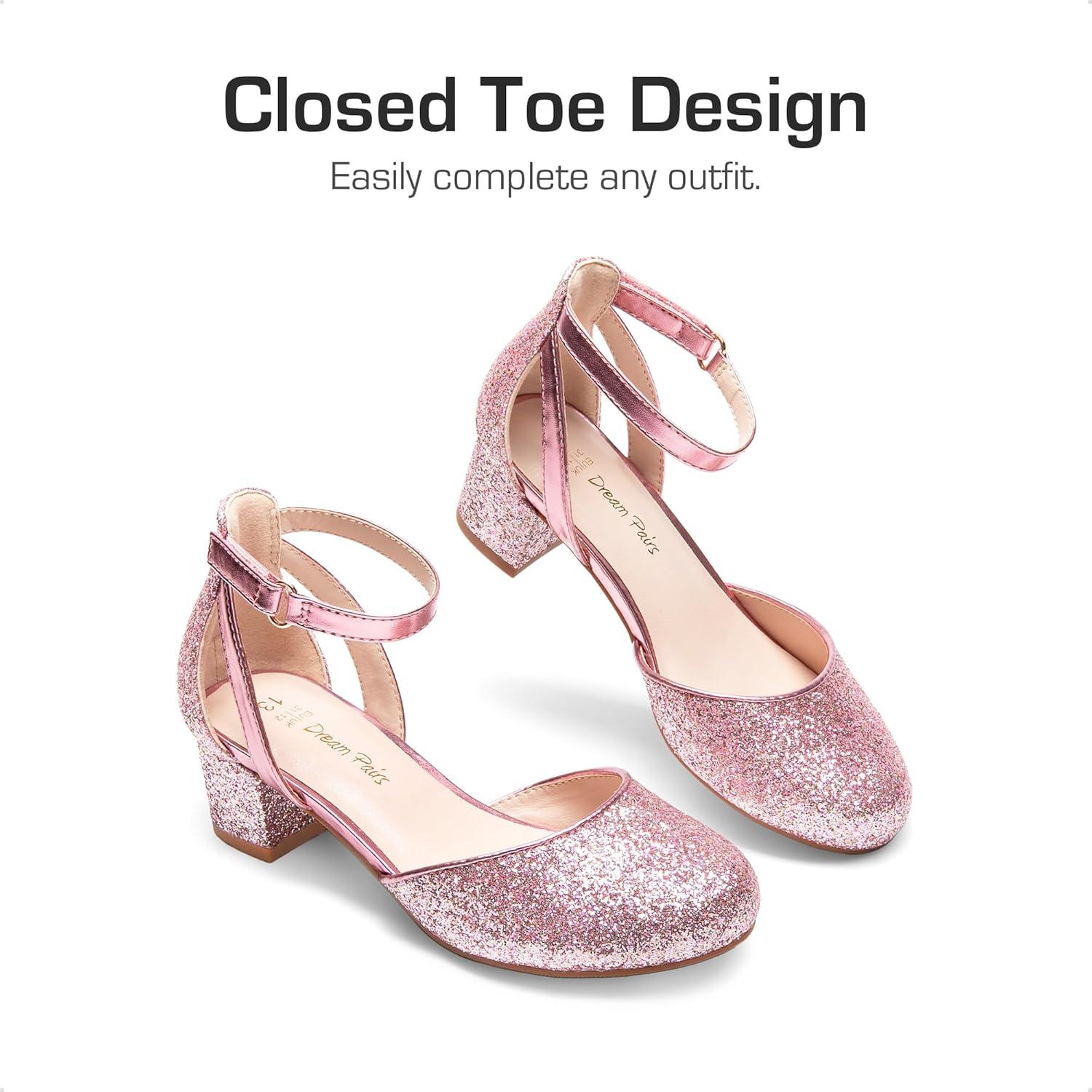 DREAM PAIRS Girls Dress Shoes Closed Toe High Heels Ankle Strap Toddler Little Big Kid Wedding Flower Party Pump(Pink)