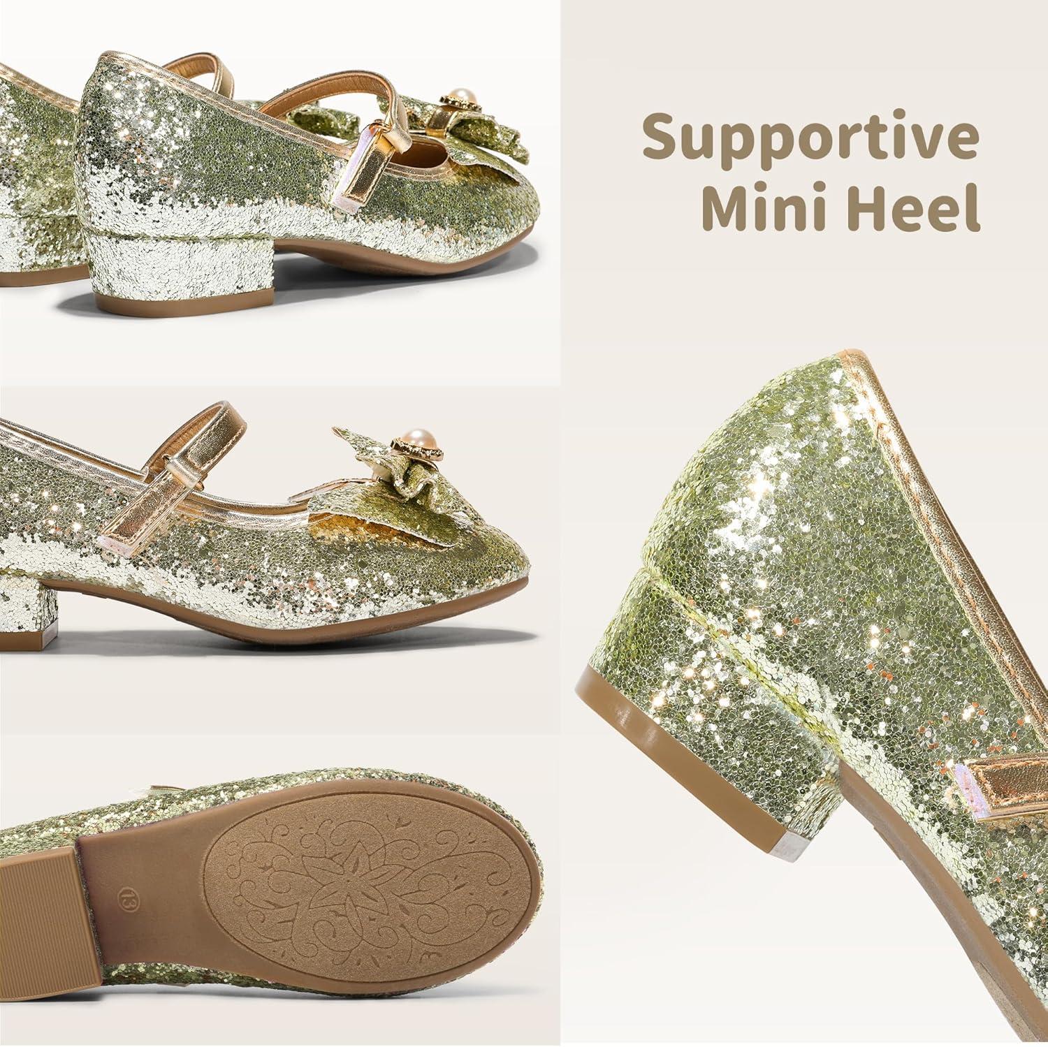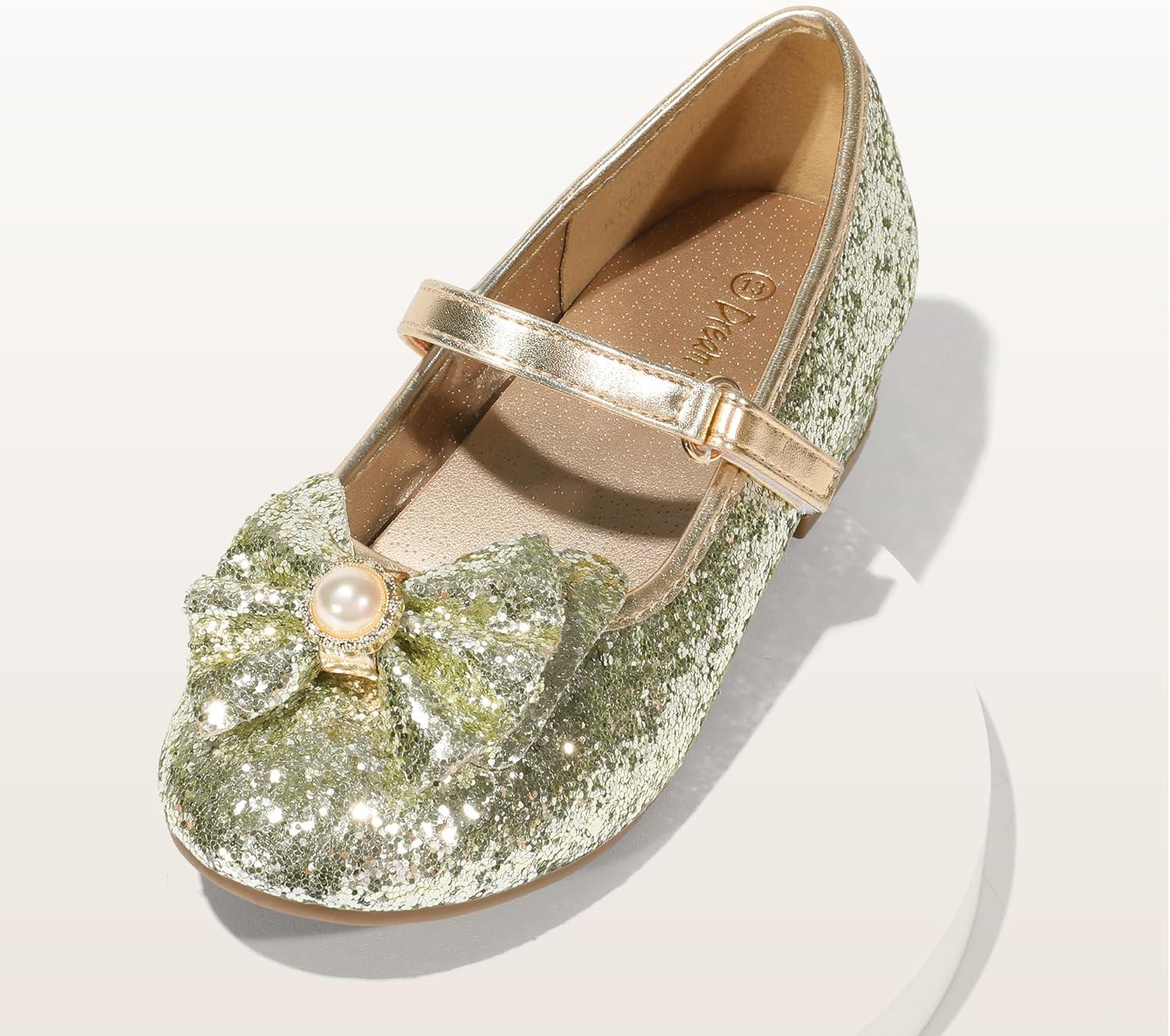 DREAM PAIRS Girls Dress Shoes Princess Shoes for Toddler Little Girl Mary Jane Low Heels Glitter Flower Party Wedding Footwear(Gold)