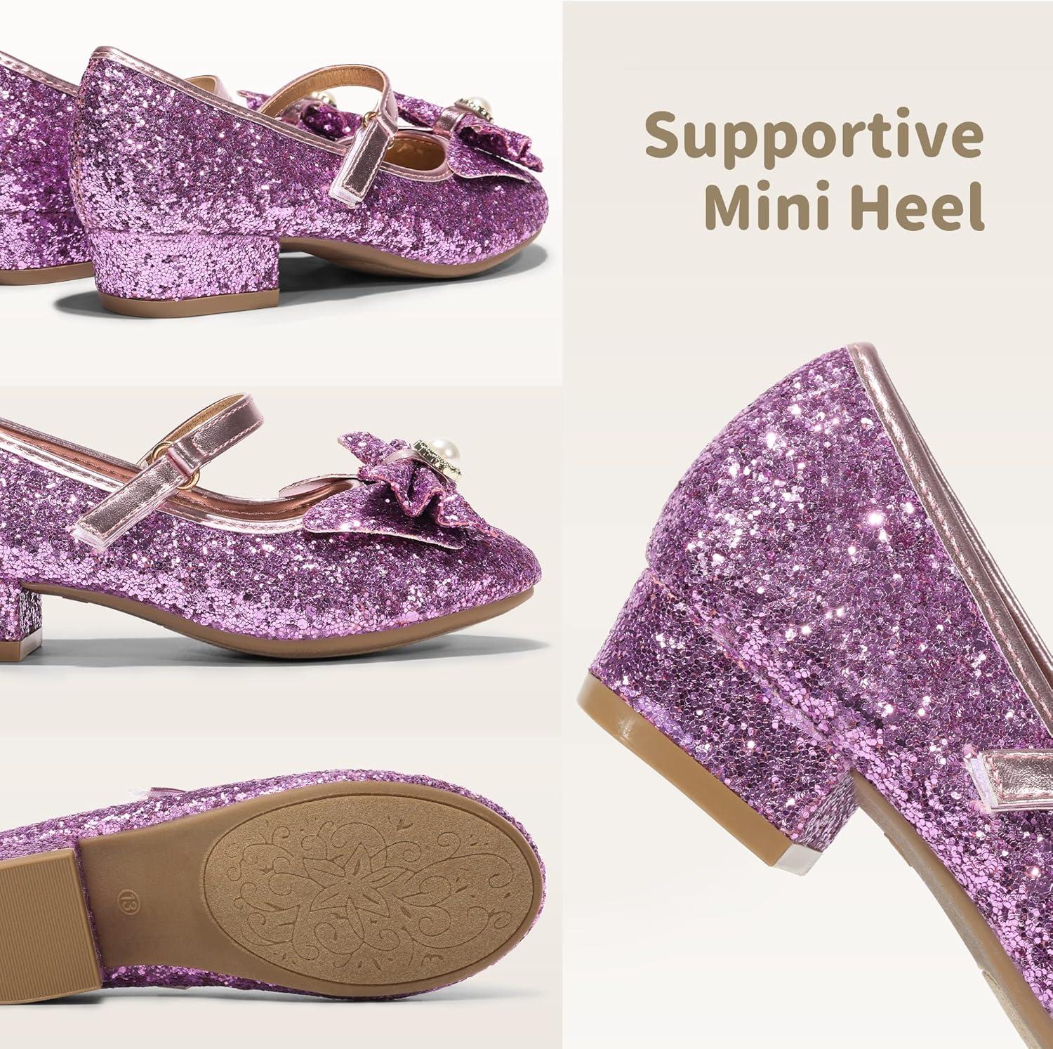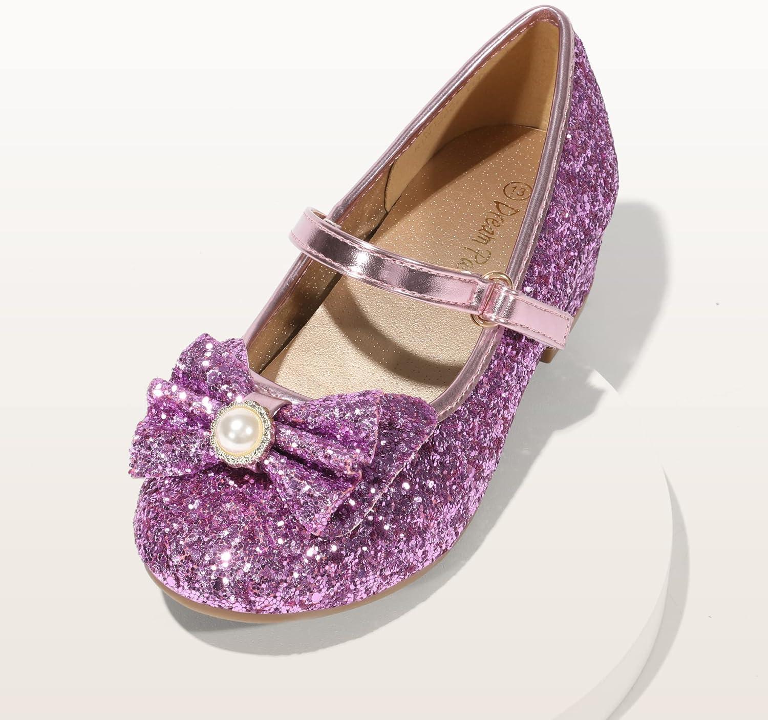 DREAM PAIRS Girls Dress Shoes Princess Shoes for Toddler Little Girl Mary Jane Low Heels Glitter Flower Party Wedding Footwear(Purple)