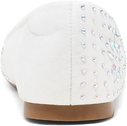 DREAM PAIRS Girls Dress Shoes Slip-on Rhinestone Glitter Ballet Flats for Wedding, Party, Birthday, Prom, Little Kid/Big Kid(Nina-100-white)