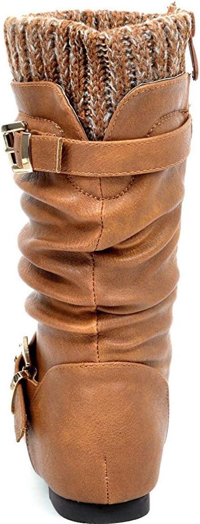Your little angel will look very cute with a pair of this Dream Pairs girl's double buckles riding boots. These adorable knee high boots is featured with elastic knitted fabric upper, one adjustable buckle, warm faux fur lining, and lightweight rubber sole. Pick from one of the assorted colors and mix and match with her favorite legging and sweaters for an adorable style. Full size only, please order half size up for loose fit.