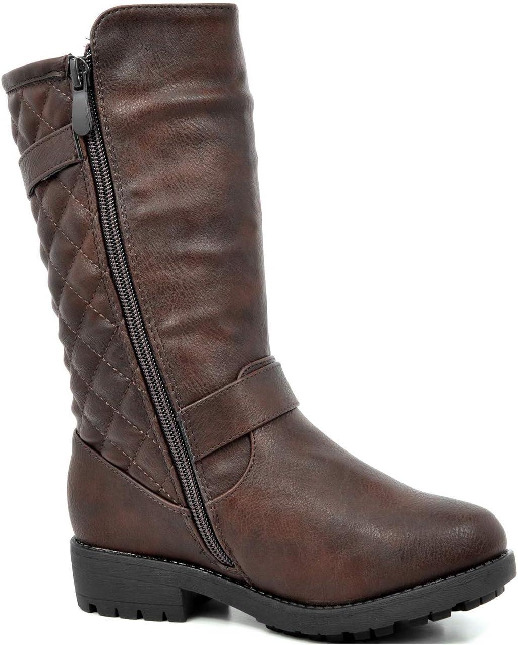DREAM PAIRS Girls Faux Fur Lining Knee High Winter Motorcycle Riding Boots Toddler/Little Kid/Big Kid(Brown)