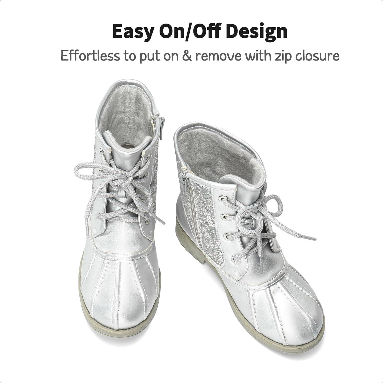 DREAM PAIRS Girls Glitter Ankle Boots Warm and Soft Velvet Lining with Side Zipper for Toddler/Little Kid/Big Kid(Sliver)