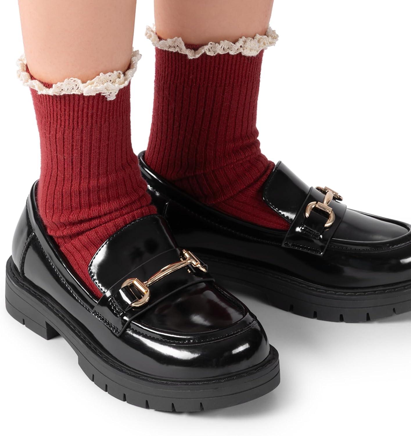 DREAM PAIRS Girls Loafers Chunky Platform Slip On Loafers School Uniform Dress Shoes(Black-patent)