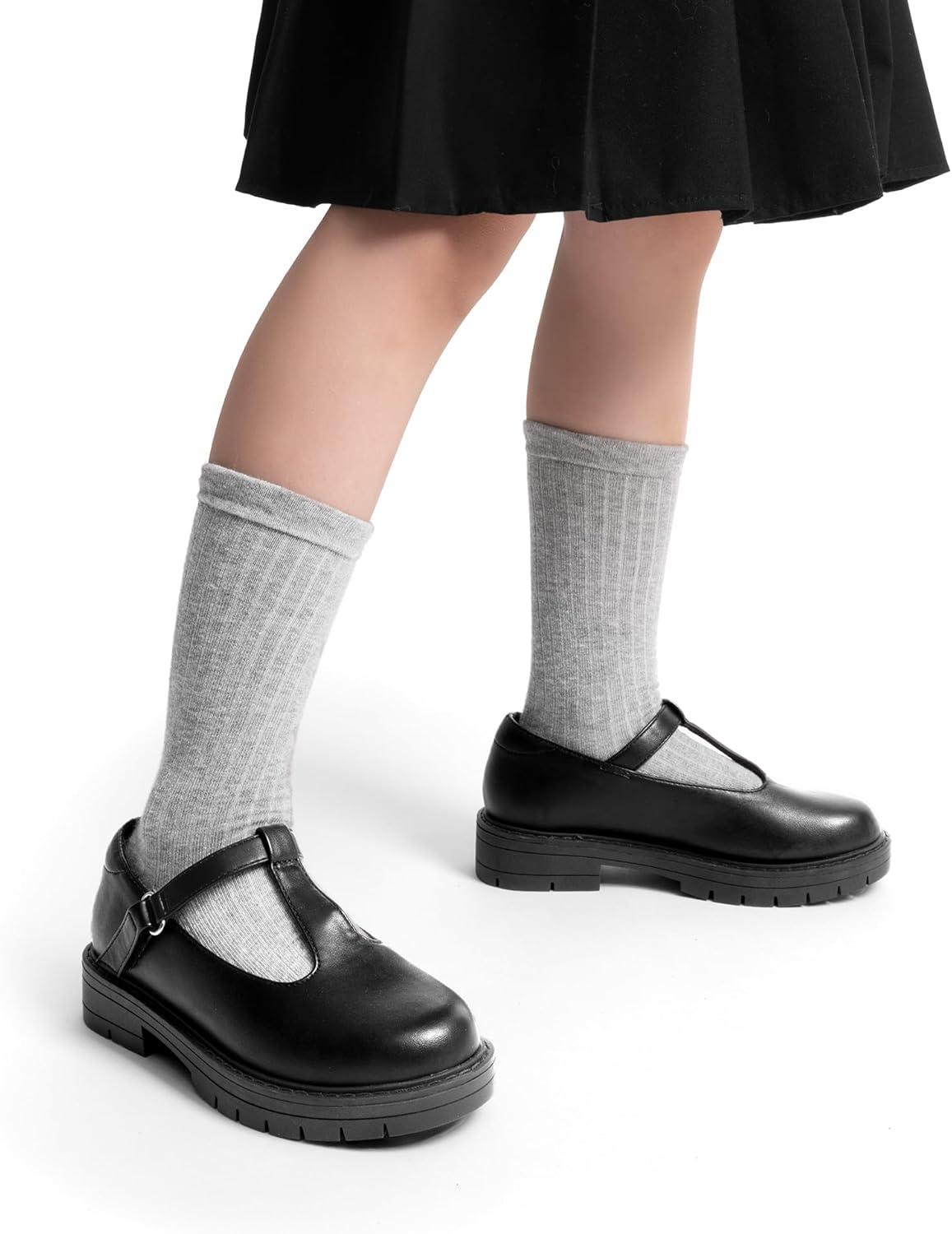 DREAM PAIRS Girls Mary Jane Dress Shoes Chunky Platform School Uniform Shoes T-Strap Oxfords Loafers Star Flats(Black)
