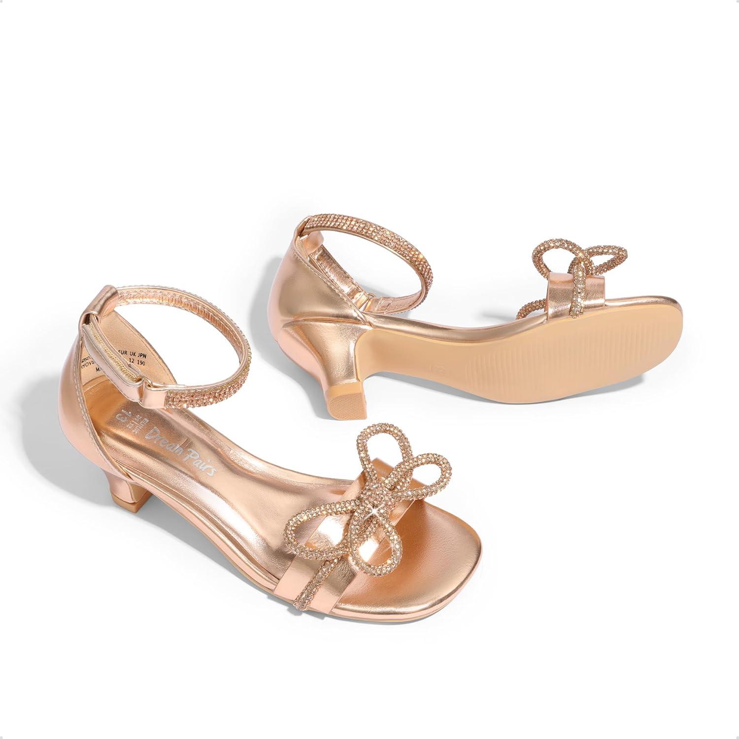 DREAM PAIRS Girls Sandals Ankle Strap Square Toe Low Heel Bow Flower Dress Shoes(Champagne-pu)